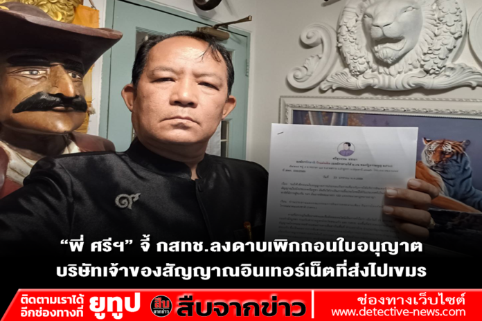 วันที่ 24 ม.ค.69 นายศรีสุวรรณ จรรยา ผู้นำองค์กรรักชาติ รักแผ่นดิน เปิดเผยว่า องค์กรฯได้ส่งจดหมายไปยัง กสทช.ให้เร่งเพิกถอนใบอนุญาตบริษัทเอกชนเจ้าใหญ่ของไทยที่ลักลอบส่งสัญญาณอินเทอร์เน็ตให้ประเทศกัมพูชา อันเป็นการเอื้อประโยชน์ให้กับแก๊งค์คอลเซ็นเตอร์ สแกมเมอร์ และการหลอกลวงออนไลน์ในกัมพูชาที่ก่ออาชญากรรมหลอกลวงประชาชนไปทั่วโลก โดยเฉพาะประเทศไทย รวมทั้งเป็นแหล่งทุนให้กัมพูชามาทำสงครามกับประเทศไทย ซึ่งธุรกิจของไทยไม่ควรเอื้อประโยชน์ให้กลุ่มธุรกิจเหล่านี้กลับมาทำร้ายประเทศไทย