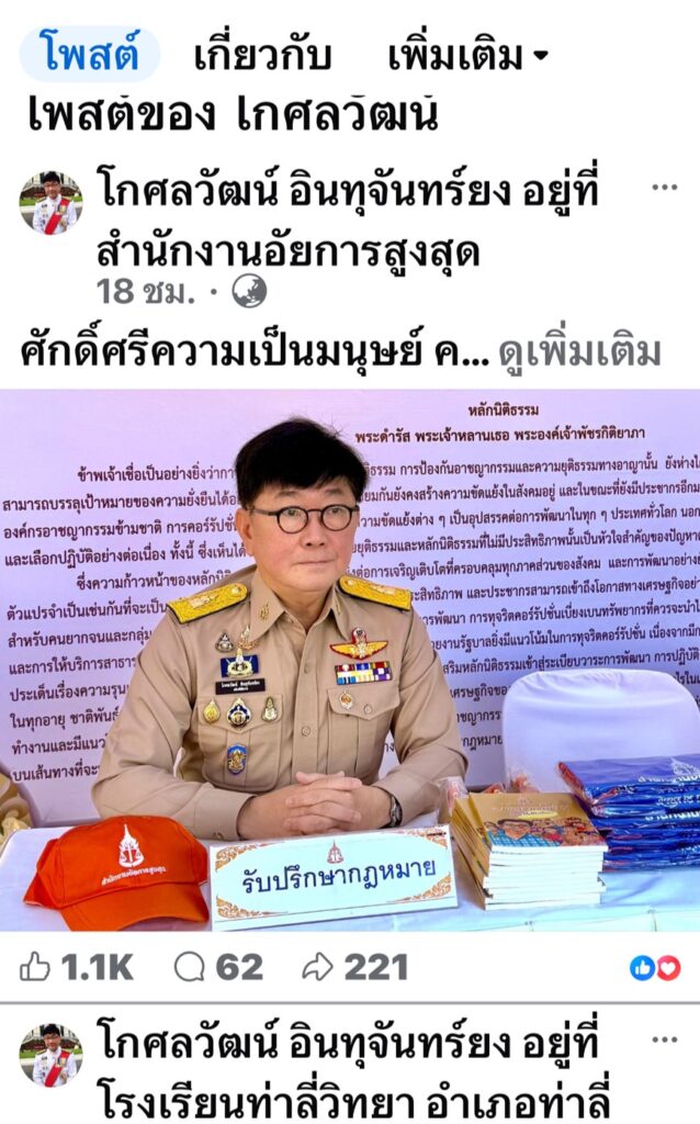ผู้สื่อข่าวรายงานว่า วานนี้ (25 ม.ค.69) นายโกศลวัฒน์ อินทุจันทร์ยง อธิบดีอัยการ สคช. โพสต์เฟซบุ๊ก ว่า…