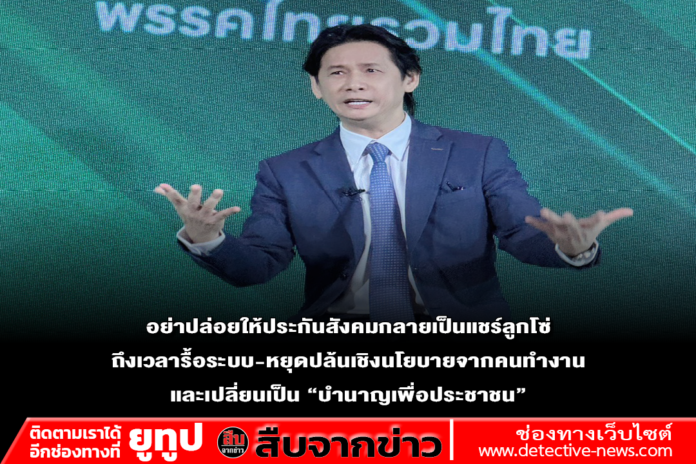 รศ.ดร.โสภณ เอส.บิวโดอิน (ดร.โจ) แคนดิเดตนายกรัฐมนตรี พรรคไทยรวมไทย ตีแผ่ประกันสังคมไทยกำลังกลายเป็น “แชร์ลูกโซ่เชิงโครงสร้าง” ที่รอวันล่มสลาย และทางรอดเดียวคือการ “ผ่าตัด” ครั้งใหญ่สู่เวอร์ชัน 2.0 ตามโมเดลสวีเดน