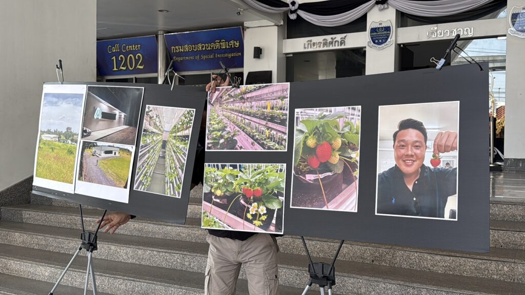 ผู้เสียหายระบุว่า เหตุเกิดเมื่อปี 2567 โดยนาย ธ. นักธุรกิจไทย ชักชวนชาวจีนลงทุนทำฟาร์มสตรอเบอรี่ พท.แห่งหนึ่งในจังหวัดชายทะเล อ้างว่ามีกลุ่มผู้กว้างขวางและนักการเมืองหนุนหลัง โดยใช้ที่ดินกว่า 100 ไร่เป็นสถานที่ตั้งโครงการ สร้างความน่าเชื่อถือ จนผู้เสียหายหลงเชื่อนำเทคโนโลยีจากสิงคโปร์และเงินทุนกว่า 20 ล้านบาทมาลงทุน แต่ถูกบังคับเงื่อนไขการจดทะเบียนให้ นาย ธ. ถือหุ้น 51% และคนจีนไม่มีอำนาจเบิกถอนเงิน