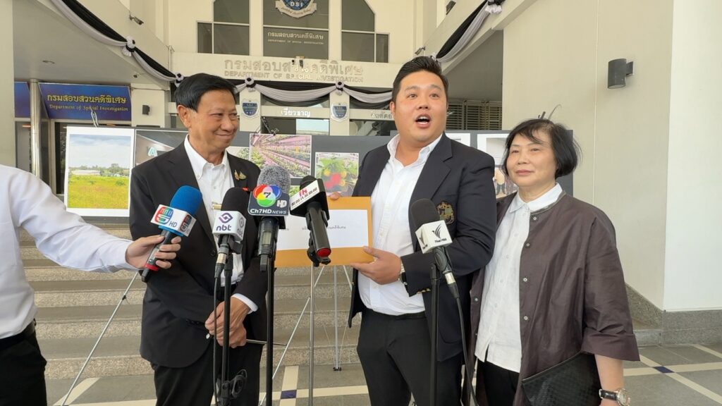 เมื่อเวลา 09.30 น. วันที่ 27 ม.ค.69 ที่ กรมสอบสวนคดีพิเศษ (DSI) ถนนแจ้งวัฒนะ นายกฤษฎา อินทามระ หรือ “ทนายปราบโกง” พร้อม นายชุน ยุง วู อายุ 36 ปี และ นางไลลา วอง อายุ 60 ปี นักลงทุนชาวจีน เข้ายื่นหนังสือร้องทุกข์ต่ออธิบดี DSI เพื่อขอให้รับเป็นคดีพิเศษ หลังถูกขบวนการนักธุรกิจไทยและผู้กว้างขวางร่วมกันวางแผนฉ้อโกง ยึดกิจการและเทคโนโลยีการเกษตรมูลค่าความเสียหายกว่า 20 ล้านบาท