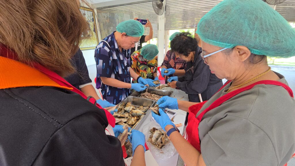 ซึ่งอาชีพประมงถือเป็นรากฐานสำคัญของระบบเศรษฐกิจและวิถีชีวิตชีวิตของพี่น้องประชาชนในพื้นที่มาอย่างยาวนาน อย่างไรก็ตาม ในปัจจุบันเราต้องเผชิญกับความเปลี่ยนแปลง ทั้งด้านทรัพยากรธรรมชาติ กฎระเบียบ และเทคโนโลยีที่ทันสมัยขึ้น การจัดอบรมในครั้งนี้จึงเป็นโอกาสอันดีที่ทุกท่านจะได้เพิ่มพูนทักษะ นำนวัตกรรมใหม่ๆ มาประยุกต์ใช้ เพื่อยกระดับการผลิตและการแปรรูปสัตว์น้ำ ให้มีคุณภาพ มาตรฐาน และเป็นที่ต้องการของตลาด และนำความรู้ที่ได้รับไปต่อยอดอาชีพ สร้างรายได้ที่มั่นคง และร่วมกันรักษาทรัพยากรทางทะเลและชายฝั่งให้ยั่งยืนสืบไป โดยมีวิทยากรจากวิทยาลัยดุสิตธานี พัทยา มาให้ความรู้การเพิ่มมูลค่าอาหารทะเล การทำแกงไต ทั้งวิธีการทำการตลาด การคิดต้นทุน การตั้งราคาและการทำแพ็คเกจสินค้า ให้มีความทันสมัย เพื่อไปต่อยอดในการนำไปสร้างผลิตภัณฑ์ แบรนด์ของตนเองต่อไป