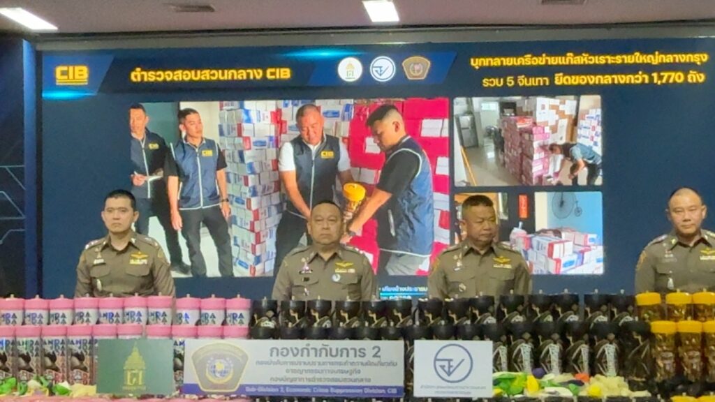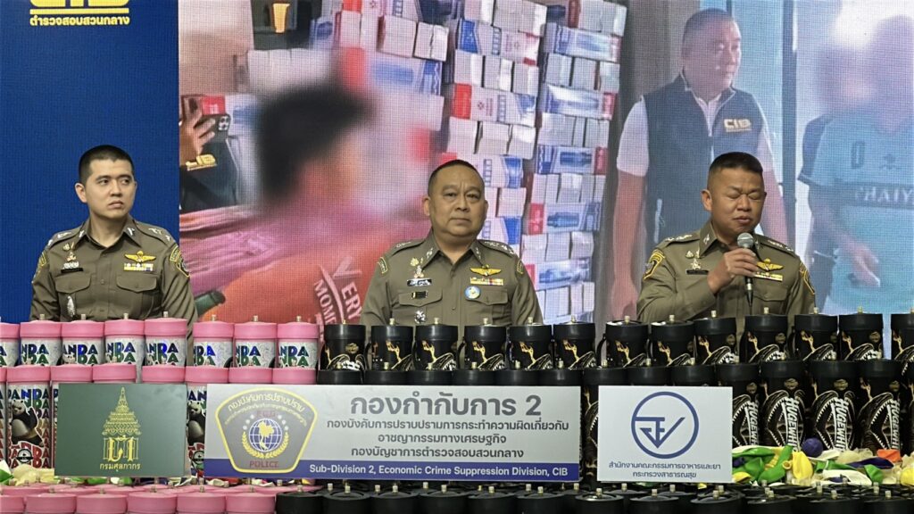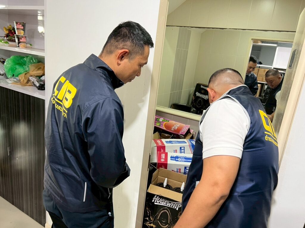 กองบัญชาการตำรวจสอบสวนกลาง (CIB) โดย กองบังคับการปราบปรามการกระทำความผิดเกี่ยวกับอาชญากรรมทางเศรษฐกิจ ภายใต้การอำนวยการของ พล.ต.ท.ณัฐศักดิ์ เชาวนาศัย ผบช.ก. ได้สั่งการให้ พล.ต.ต.ทัศน์ภูมิ จารุปรัชญ์ ผบก.ปอศ., พ.ต.อ.วิวัฒน์ จิตโสภากุล รอง ผบก.ปอศ., พ.ต.อ.ภัทราวุธ อ่อนช่วย รอง ผบก.ปอศ., พ.ต.อ.นฤพนธ์ กรุณา ผกก.2 บก.ปอศ., พ.ต.ท.สถาพร ภู่ระหงษ์ รอง ผกก.2 บก.ปอศ. และพ.ต.ท.ชวพล เชื้อเพ็ชร์ รอง ผกก.2 บก.ปอศ. กรมศุลกากร โดย นางสาว สุนทรียา ทวิชาประสิทธิ์ รองอธิบดีกรมศุลกากร และ นายเอกวุฒิ นาเอกผู้อำนวยการกองสืบสวนและปราบปราม กรมศุลกากร สำนักงานคณะกรรมการอาหารและยา โดย เภสัชกร เลิศชาย เลิศวุฒิ รองเลขาธิการคณะกรรมการอาหารและยา เจ้าหน้าที่ชุดจับกุม โดย พ.ต.ต.ปฏิภาณ เป็นสุข สว.กก.2 บก.ปอศ. ร.ต.อ.นุศาสน์ เพชรเปี่ยมแสงงาม, ร.ต.อ.กษิดิ์พิชญ์ สุภาสูรย์ รอง สว.กก.2 บก.ปอศ. พร้อมด้วยเจ้าหน้าที่ตำรวจ กก.2 บก.ปอศ.