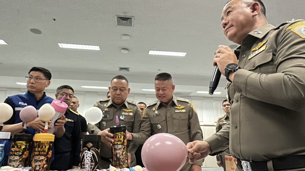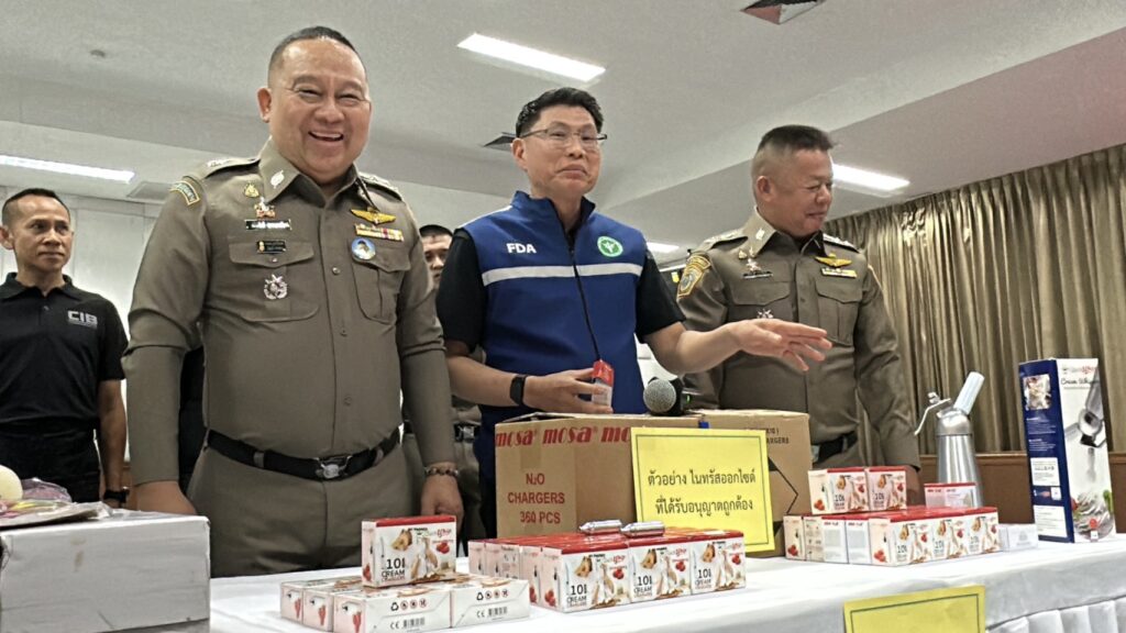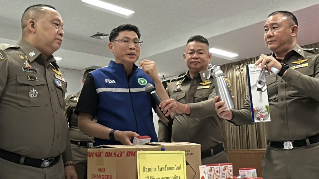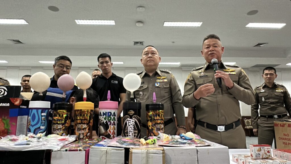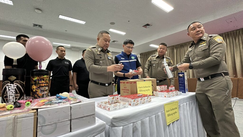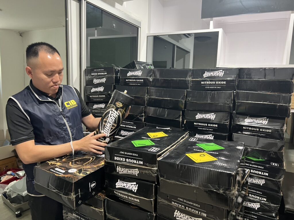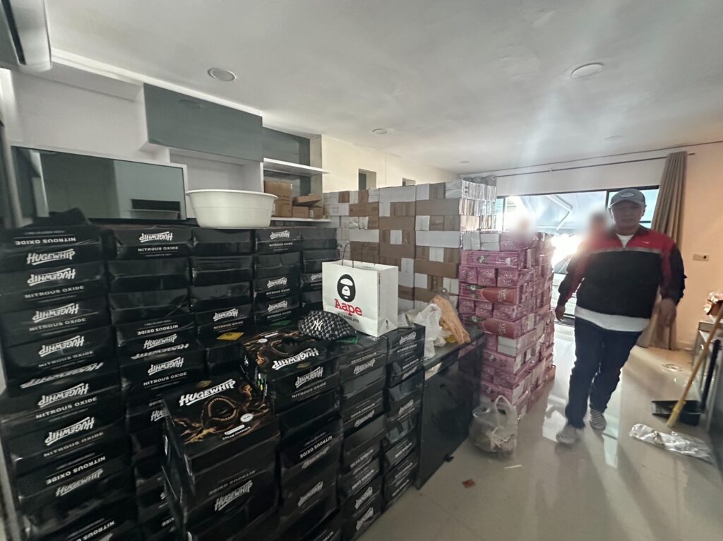 พฤติการณ์ ตามนโยบายของผู้บังคับบัญชาได้สั่งการให้ กก.2 บก.ปอศ. ดำเนินการสืบสวนปราบปรามการกระทำความผิดที่เกี่ยวข้องกับการลักลอบนำเข้าและจำหน่ายสินค้าที่อาจก่อให้เกิดอันตรายต่อประชาชนโดยทั่วไป โดยเฉพาะอย่างยิ่งในเด็กและเยาวชนที่สามารถเข้าถึงได้อย่างง่ายดาย โดย กก.2 บก.ปอศ. ได้รับรายงานเบาะแสว่า ปัจจุบันมีการลักลอบนำเข้าและจำหน่ายแก๊สชนิดหนึ่งซึ่งเป็นที่รู้จักกันในชื่อ “แก๊สหัวเราะ” หรือ ไนตรัสออกไซด์ (Nitrous Oxide: N₂O) ในรูปแบบการจำหน่ายผ่านช่องทางออนไลน์และยังมีลักลอบจำหน่ายให้นักท่องเที่ยวตามสถานบันเทิงต่างๆ ซึ่งแก๊สชนิดนี้กำลังเป็นที่นิยมในหมู่กลุ่มปาร์ตี้วัยรุ่นชาวจีน จากข้อมูลเบื้องต้นพบว่าผู้จำหน่ายมักอ้างว่าแก๊สดังกล่าวมีไว้เพื่อใช้ในอุตสาหกรรมการผลิตอาหาร โดยเฉพาะการทำวิปครีม ซึ่งสามารถนำมาใช้ได้อย่างถูกต้องตามกฎหมาย แต่แท้จริงแล้วผู้ซื้อจำนวนมากกลับนำไปใช้ในทางที่ผิด โดยการสูดดมผ่านลูกโป่งเพื่อให้เกิดอาการเคลิบเคลิ้ม มึนงง และหัวเราะอย่างผิดปกติชั่วขณะ ก่อให้เกิดความเสี่ยงต่อสุขภาพ ทั้งระบบประสาท ระบบทางเดินหายใจ และอาจก่อให้เกิดอันตรายถึงชีวิตได้