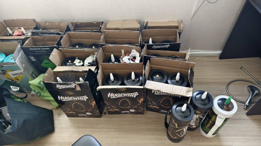 เจ้าหน้าที่ตำรวจ กก.2 บก.ปอศ. จึงมีมาตรการเชิงรุกในการสืบสวนหาแหล่งที่เก็บซุกซ่อนแก๊สไนตรัสออกไซด์ เพื่อเป็นการตัดวงจร ยับยั้งก่อนมีการจำหน่ายให้กับประชาชนทั่วไป โดยตั้งแต่เมื่อช่วงเดือน ส.ค.68 กก.2 บก.ปอศ. ได้ทำการติดต่อล่อซื้อแก๊สไนตรัสออกไซด์จากพ่อค้าชาวจีน จนสามารถจับกุมตัวพร้อมของกลางได้เป็นจำนวนกว่า 50 ถัง ที่บรรทุกมาส่งเต็มท้ายกระโปรงรถ ซึ่งในเช้าวันรุ่งขึ้นเจ้าหน้าที่ฯ จึงทำการขออนุมัติต่อศาลฯ เพื่อทำการตรวจค้นอีก 2 จุด คือ คอนโดฯ ย่านห้วยขวาง และ บ้านพักฯ ของผู้ต้องหาชาวจีนดังกล่าว ผลปรากฏว่า ในคอนโดย่านห้วยขวาง สามารถจับกุมตัวแม่ค้าชาวเวียดนามพร้อมของกลาง เป็นแก๊สไนตรัสออกไซด์ จำนวน 12 ถัง จากการตรวจสอบกล้องวงจรปิดเพิ่มเติมพบว่า แม่ค้าดังกล่าวมักจะสั่งซื้อสินค้ามาจากอีกทอดหนึ่ง และจะทำการเก็บไว้ภายในห้องพักของตนเพื่อจะนำไปจำหน่ายปลีกให้ลูกค้าทั่วในย่านนี้ผ่านไรเดอร์ ส่วนบ้านพักของผู้ต้องหาชาวจีนซึ่งผู้ต้องหาให้การว่าอาศัยอยู่กับเพื่อนของตนอีกคนหนึ่ง แต่เมื่อเจ้าหน้าที่เข้าไปตรวจสอบ ไม่พบผู้อยู่อาศัย และสิ่งของผิดกฎหมายแต่อย่างใด พบแต่เพียงร่องรอยการถังแก๊ส ไนตรัสออกไซด์เปล่า ซึ่งเจ้าหน้าที่ฯเชื่อว่า คนร้ายไหวตัวหลบหนีไปก่อนการเข้าตรวจค้น