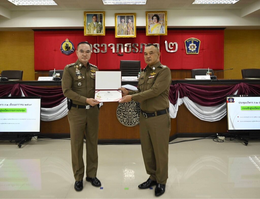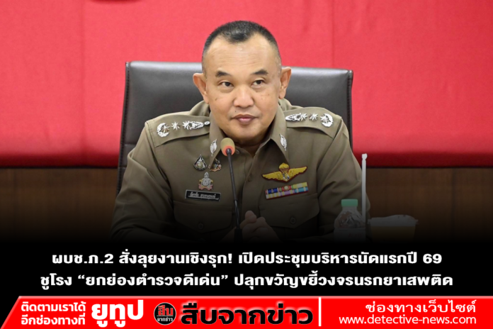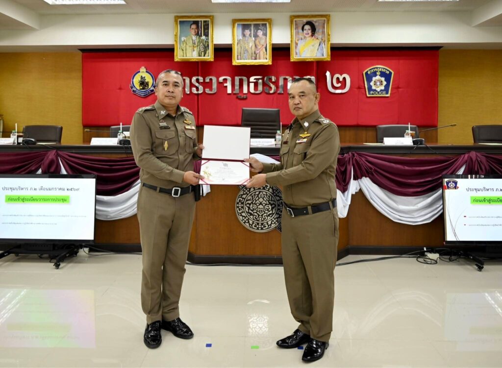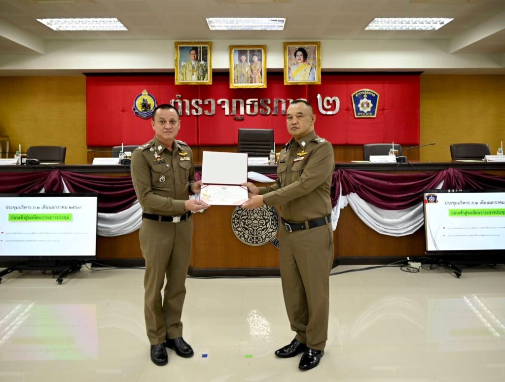 พลังสีกากีภาคตะวันออก! พล.ต.ท.ฉัตรชัย สุรเชษฐพงษ์ ผบช.ภ.2 นั่งแท่นประธานประชุมบริหารประจำเดือนมกราคม 2569 ขับเคลื่อนยุทธศาสตร์บำบัดทุกข์บำรุงสุขเชิงรุก พร้อมเปิดเวทีเชิดชูเกียรติข้าราชการตำรวจน้ำดีผู้มีผลงานปราบปรามยาเสพติดยอดเยี่ยม ตอกย้ำวินัยและจริยธรรมเพื่อเป็นที่พึ่งของประชาชนอย่างแท้จริงค่ะ