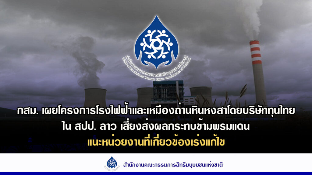 1.กสม. เผยโครงการโรงไฟฟ้าและเหมืองถ่านหินหงสาโดยบริษัททุนไทยใน สปป. ลาว เสี่ยงส่งผลกระทบข้ามพรมแดนในพื้นที่จังหวัดน่าน แนะหน่วยงานที่เกี่ยวข้องเร่งแก้ไข