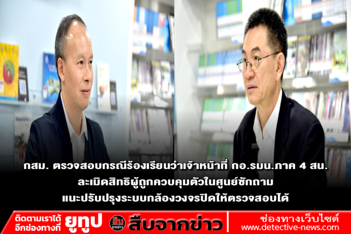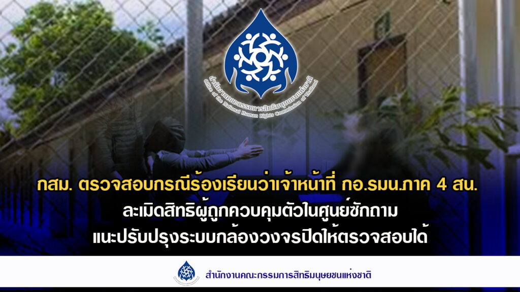 2.กสม. ตรวจสอบกรณีร้องเรียนว่าเจ้าหน้าที่ กอ.รมน.ภาค 4 สน. ละเมิดสิทธิผู้ถูกควบคุมตัวในศูนย์ซักถาม แนะปรับปรุงระบบกล้องวงจรปิดให้ถูกต้องตามกฎหมาย เพื่อให้โปร่งใสและตรวจสอบได้