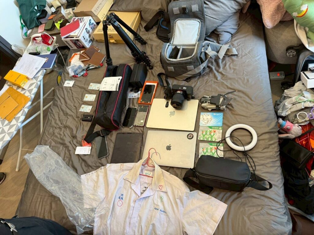 ผลการตรวจค้นจับกุม ผู้ต้องหา นายณัฐวัฒน์ฯ อายุ 18 ปี ของกลาง โทรศัพท์มือถือ, คอมพิวเตอร์, กล้องวิดีโอ DJI, อุปกรณ์บันทึกข้อมูล และสมุดบัญชีธนาคาร รวม 14 รายการ พบคลิปวิดีโอขณะมีเพศสัมพันธ์ระหว่างชาย 3 คน ซึ่งตรงกับที่เผยแพร่บน X (Twitter) และ OnlyFans