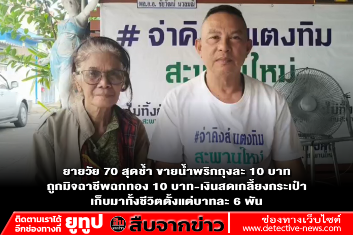 กลายเป็นเรื่องราวสุดรันทดเมื่อคุณยายวัย 70 ปี แม่ค้าขายน้ำพริกย่านคลองเตย ถูกคนร้ายทำทีมาซื้อน้ำพริกเพียง 10 บาท ก่อนอาศัยจังหวะเผลอฉกกระเป๋าซึ่งภายในมีทองคำหนักรวม 10 บาท และเงินสดอีก 3 หมื่นบาท หลบหนีลอยนวล เผยเป็นทรัพย์สินก้อนสุดท้ายที่สะสมมาตั้งแต่อายุยังน้อย