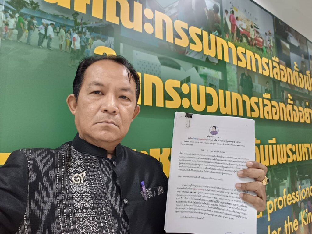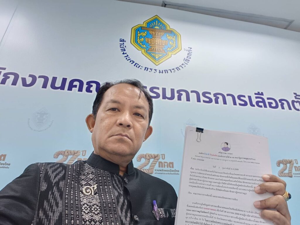 วันที่ 2 ก.พ.69 ที่สำนักงาน กกต.ศูนย์ราชการฯ อาคาร B นายศรีสุวรรณ จรรยา ผู้นำองค์กรรักชาติ รักแผ่นดิน ได้เดินทางมายื่นคำร้องต่อคณะกรรมการการเลือกตั้ง (กกต.) และนายทะเบียนพรรคการเมือง เพื่อขอให้สืบสวนไต่สวนและลงโทษพรรคกล้าธรรมที่ฝ่าฝืนข้อบังคับพรรคของตนและกฎหมายพรรคการเมือง กรณีรับสมัครสมาชิกพรรคที่เคยถูกจำคุกในคดีที่เกี่ยวกับทรัพยากรป่าไม้มาเป็นสมาชิกพรรค และยังส่งเสริมสนับสนุนให้ลงสมัคร สส.โคราช เขต 13 จนถูกศาลฎีกามีคำสั่งให้ถอนชื่อออกจากประกาศรายชื่อผู้สมัครรับเลือกตั้ง สส.แบบแบ่งเขตเลือกตั้งที่ 13 จังหวัดนครราชสีมาของพรรคกล้าธรรม ซึ่งอาจเข้าข่ายฝ่าฝืนมาตรา 45 ประกอบมาตรา 92(3) ซึ่ง กกต.มีอำนาจยื่นให้ศาลรัฐธรรมนูญวินิจฉัยสั่งยุบพรรคได้