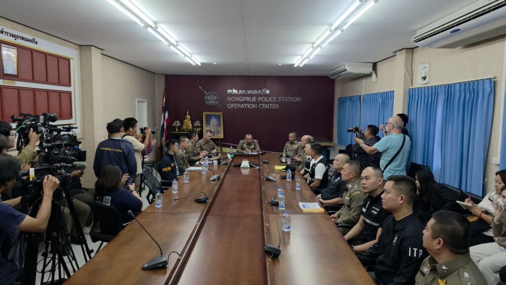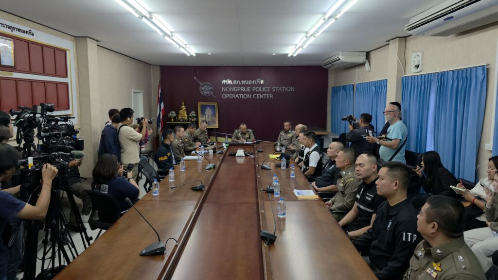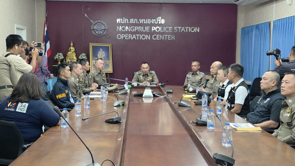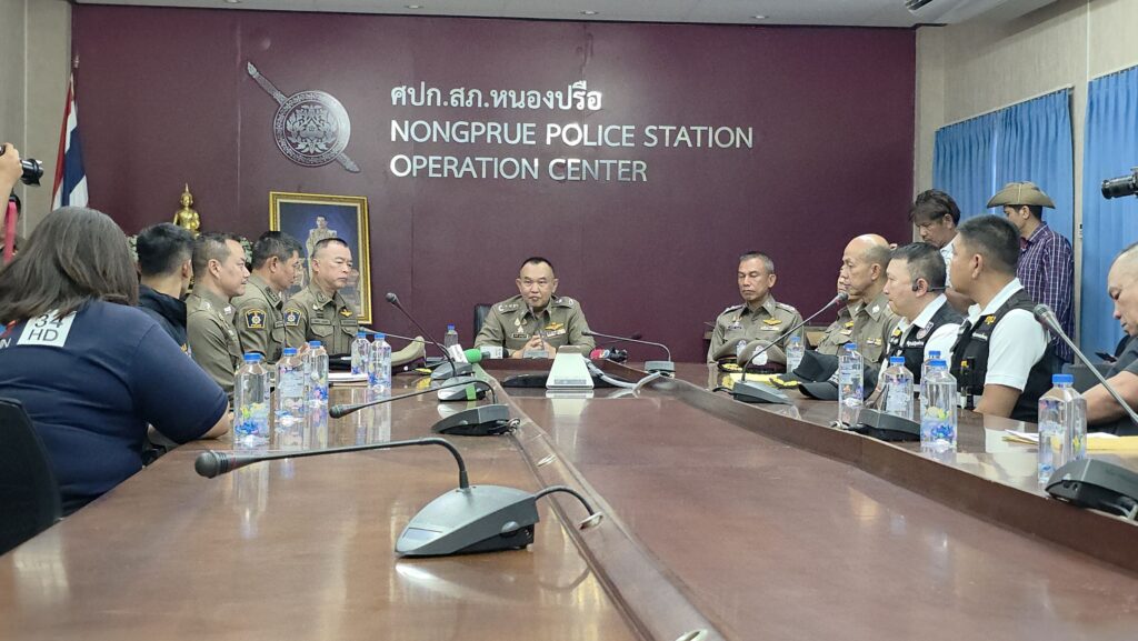 (2 ก.พ.69) ณ สภ.หนองปรือ ตำรวจภูธรภาค 2 นำโดย พล.ต.ท.ฉัตรชัย สุรเชษฐ์พงศ์ ผบช.ภ.2 ร่วมกับเจ้าหน้าที่ตำรวจ สภ.หนองปรือ และสืบสวนตำรวจภูธร จ.ชลบุรี ร่วมกับ ตำรวจท่องเที่ยวเมืองพัทยา และตำรวจตรวจคนเข้าเมือง จ.ชลบุรี รายงานความคืบหน้าการจับกุมตัวนายยารอสลาฟ และนายดมีทรี สัญชาติรัสเซีย หลังก่อเหตุฆาตกรรมอำพรางศพและเรียกค่าไถ่ นายเอเมยานอฟ มิคาเอล อิโกรวิช สัญชาติรัสเซีย โดยสามารถจับกุมตัวได้ ณ โรงแรมแห่งหนึ่ง ในเขตวัฒนา กรุงเทพมหานคร