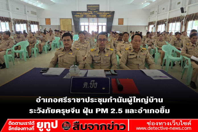 อำเภอศรีราชาประชุมหัวหน้าส่วนราชการ กำนัน ผู้ใหญ่บ้าน ครั้งที่ 2 ประจำปี 2569 มอบแนวทางการป้องกันการเกิดอัคคีภัยในช่วงเทศกาลตรุษจีน การเฝ้าระวังสถานการณ์ฝุ่น PM 2.5 ในพื้นที่ และแอปพลิเคชันจองคิวอัจฉริยะ เพื่อมุ่งสู่การเป็น “อำเภอยิ้ม..สุขใจ”
