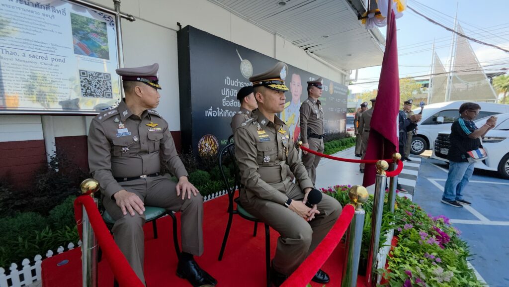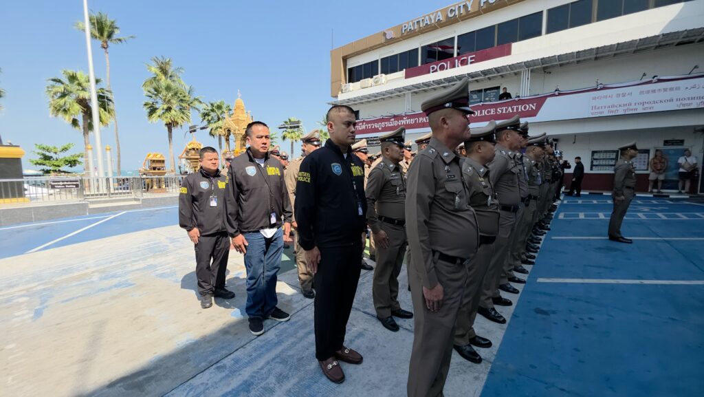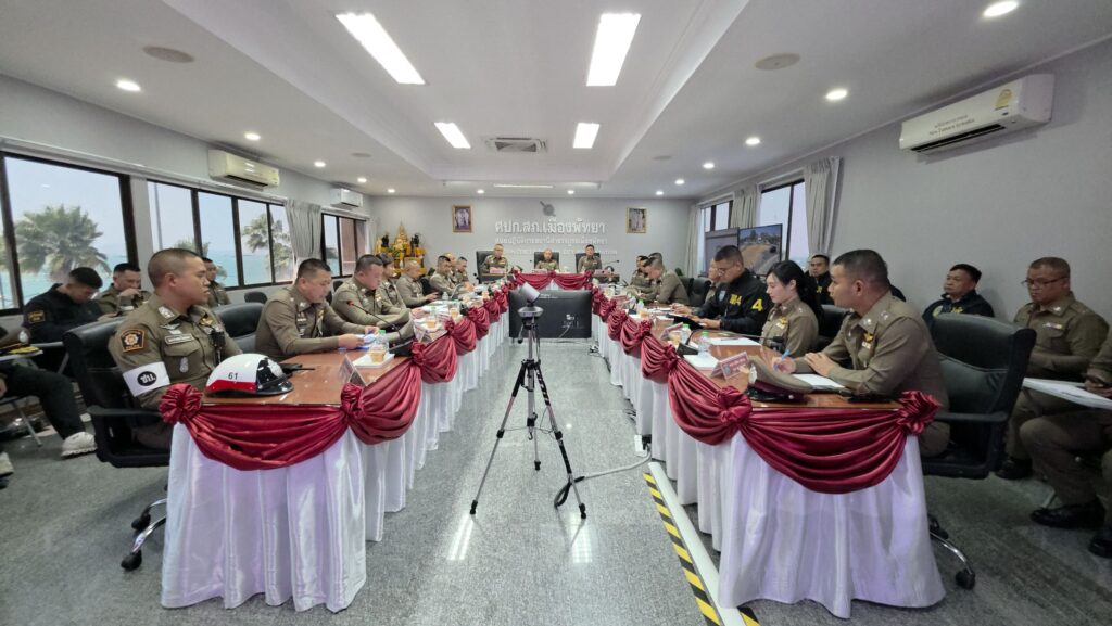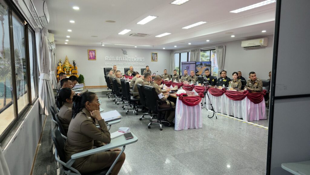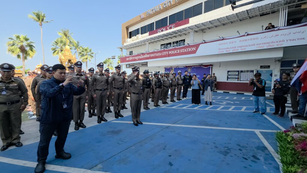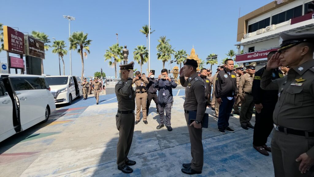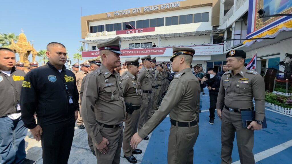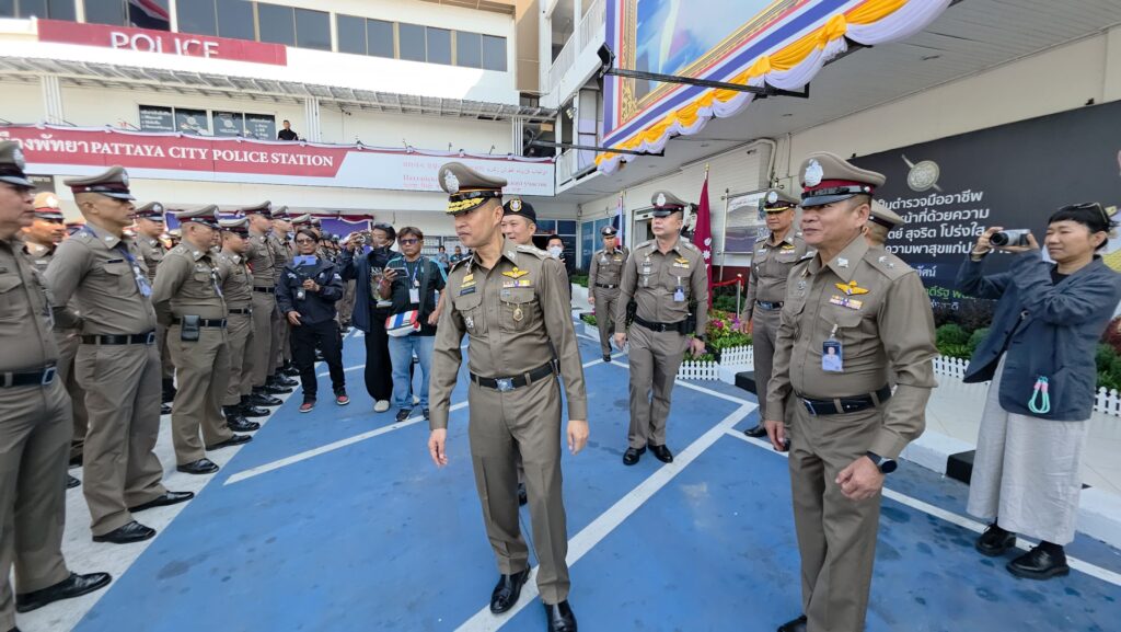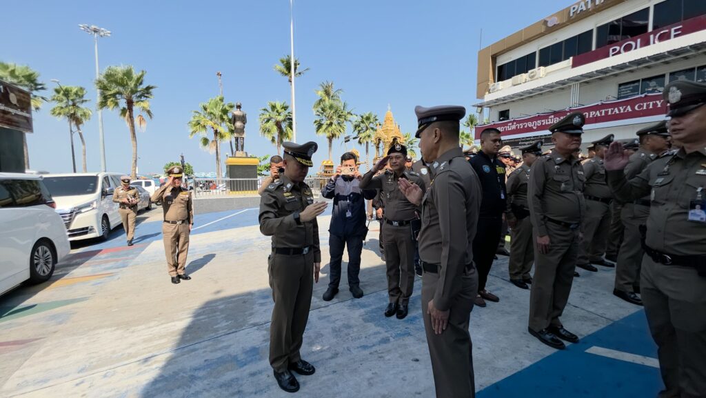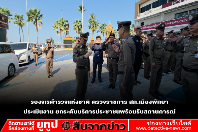 วันที่ 4 กุมภาพันธ์ 2569 พล.ต.ท.ไตรรงค์ ผิวพรรณ รองจเรตำรวจแห่งชาติ พ.ต.อ.ไพฑูรย์ พิทักษ์ธรรม รอง ผบก.ภจว.ชลบุรี, พล.ต.ต. พงศ์พันธ์ วงษ์มณีเทศ ผบก. ภ.จว. ชลบุรี, พล.ต.ต. ธนันท์ธร รัตนสิทธิภาคย์รอง ผบช.กมค. สำนักงานกฎหมายและคดี, พ.ต.อ. ทิวา โสภาเจริญ รอง ผบก.สอท.2 บช.สอท. กองบังคับการตำรวจสืบสวนสอบสวนอาชญากรรมทาง, พล.ต.ต.ศุภณัฎฐ์ เจริญเรืองสกุล รอง ผบช.ภ.2, พ.ต.อ. ทิวา โสภาเจริญ รอง ผบก.สอท.2 บช.สอท. กองบังคับการตำรวจสืบสวนสอบสวนอาชญากรรมทาง เดินทางมาตรวจราชการตามแผนงานของสำนักงานจเรตำรวจแห่งชาติ ประจำปีงบประมาณ พ.ศ.2569 ณ สถานีตำรวจภูธรเมืองพัทยา จังหวัดชลบุรี โดยมี พ.ต.ท.สิริวัฒน์ คัชมาตย์, รองผู้กำกับการป้องกันปราบปราม สภ.เมืองพัทยา พร้อมด้วยพ.ต.อ.นภัสพงษ์ โฆษิตสุริยมณี ผกก.ตม.จว.ชลบุรี, พ.ต.ท.กวิณวัชร์ อารยะสุริวงศ์ รอง ผกก.ตม.จว.ชลบุรี ข้าราชการตำรวจในสังกัด ให้การต้อนรับและรายงานผลการปฏิบัติราชการตามประเด็นที่สำนักงานตำรวจแห่งชาติกำหนด