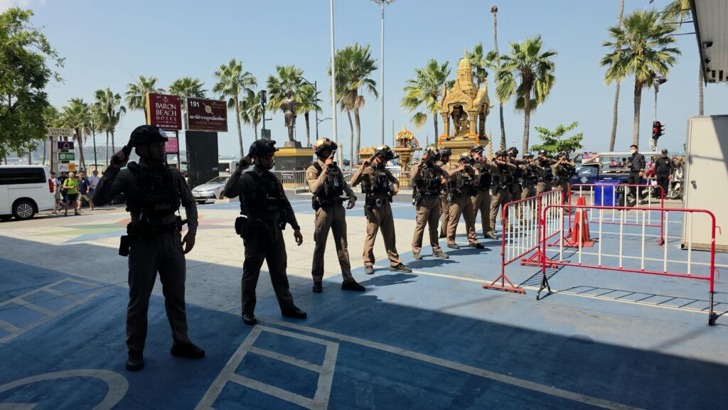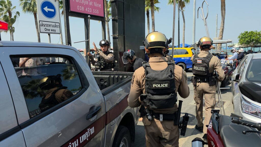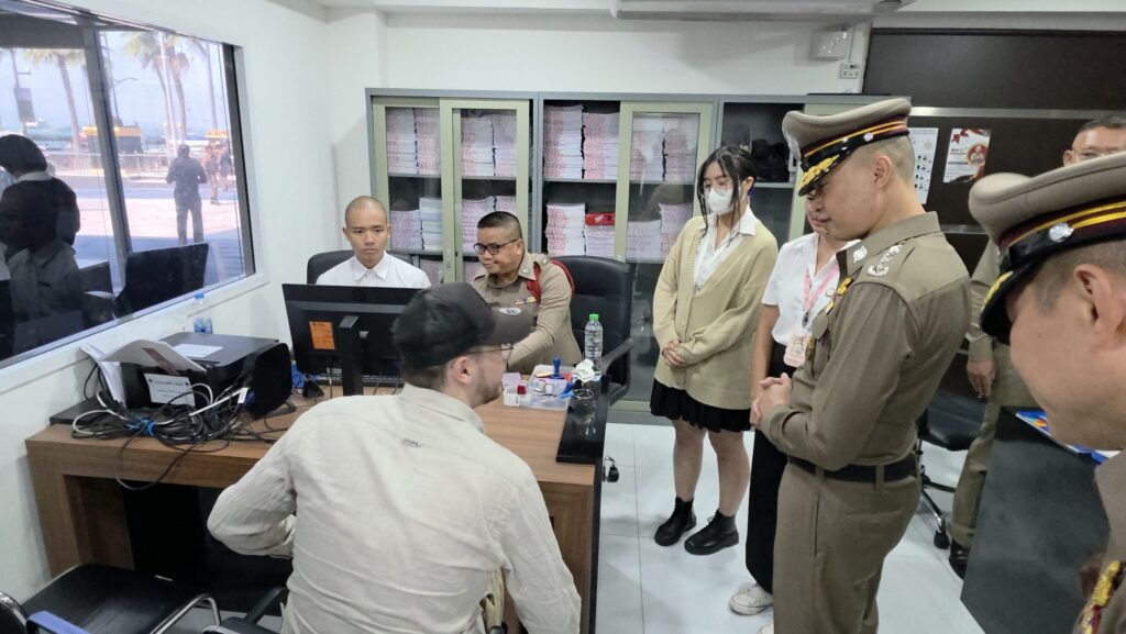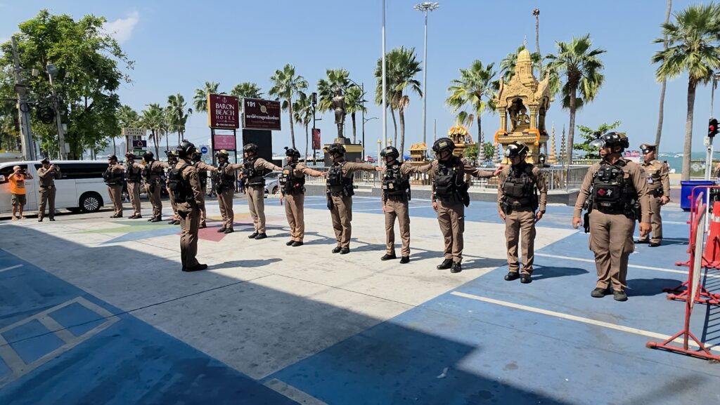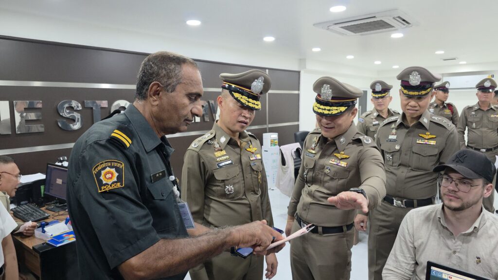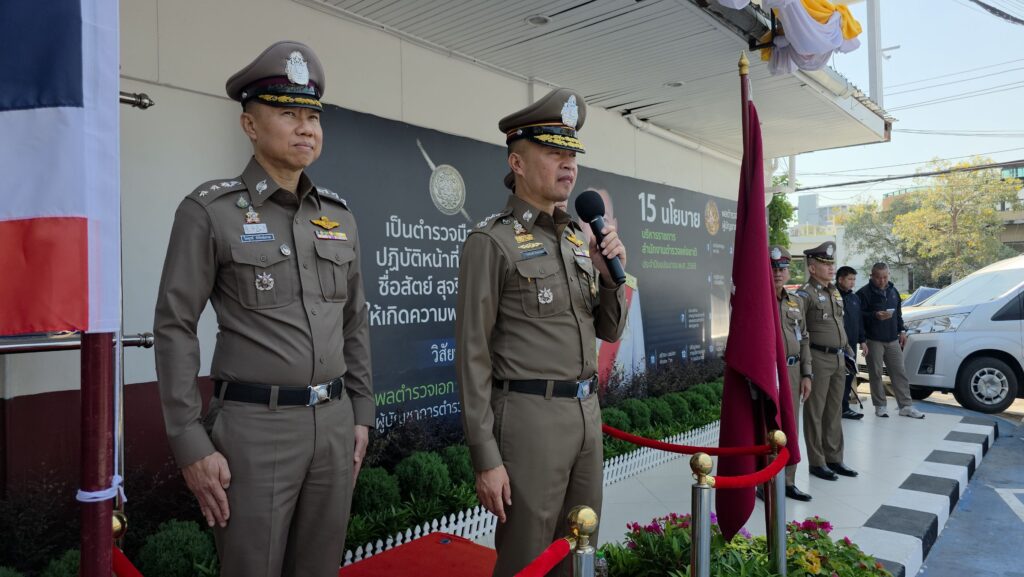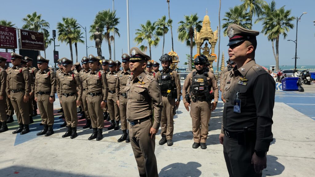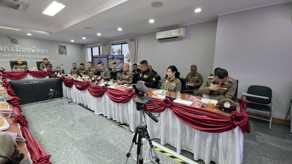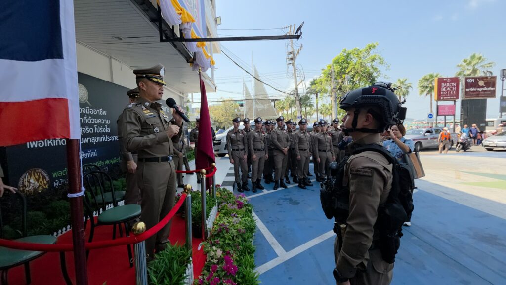 วันที่ 4 กุมภาพันธ์ 2569 พล.ต.ท.ไตรรงค์ ผิวพรรณ รองจเรตำรวจแห่งชาติ พ.ต.อ.ไพฑูรย์ พิทักษ์ธรรม รอง ผบก.ภจว.ชลบุรี, พล.ต.ต. พงศ์พันธ์ วงษ์มณีเทศ ผบก. ภ.จว. ชลบุรี, พล.ต.ต. ธนันท์ธร รัตนสิทธิภาคย์รอง ผบช.กมค. สำนักงานกฎหมายและคดี, พ.ต.อ. ทิวา โสภาเจริญ รอง ผบก.สอท.2 บช.สอท. กองบังคับการตำรวจสืบสวนสอบสวนอาชญากรรมทาง, พล.ต.ต.ศุภณัฎฐ์ เจริญเรืองสกุล รอง ผบช.ภ.2, พ.ต.อ. ทิวา โสภาเจริญ รอง ผบก.สอท.2 บช.สอท. กองบังคับการตำรวจสืบสวนสอบสวนอาชญากรรมทาง เดินทางมาตรวจราชการตามแผนงานของสำนักงานจเรตำรวจแห่งชาติ ประจำปีงบประมาณ พ.ศ.2569 ณ สถานีตำรวจภูธรเมืองพัทยา จังหวัดชลบุรี โดยมี พ.ต.ท.สิริวัฒน์ คัชมาตย์, รองผู้กำกับการป้องกันปราบปราม สภ.เมืองพัทยา พร้อมด้วยพ.ต.อ.นภัสพงษ์ โฆษิตสุริยมณี ผกก.ตม.จว.ชลบุรี, พ.ต.ท.กวิณวัชร์ อารยะสุริวงศ์ รอง ผกก.ตม.จว.ชลบุรี ข้าราชการตำรวจในสังกัด ให้การต้อนรับและรายงานผลการปฏิบัติราชการตามประเด็นที่สำนักงานตำรวจแห่งชาติกำหนด