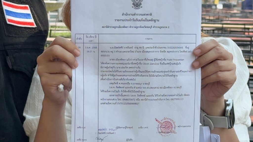 เมื่อเวลา 11.30 น. วันที่ 4 ก.พ. 2569 ที่บริเวณปราสาทแดนเนรมิตเก่า จ่าคิงส์ แตงทิม สะพานใหม่ ได้พานางสาวภัสสร์ศศิร์ หรือ “น้องเกด” ผู้เสียหายจากเมืองพัทยา เดินทางเข้าพบพนักงานสอบสวนกองบังคับการปราบปราม เพื่อขอความเป็นธรรม หลังถูกอดีตแฟนหนุ่มชาวสุพรรณบุรีหลอกลงทุนธุรกิจสูญเงินกว่า 4 แสนบาท พร้อมพฤติกรรมคุกคามทำร้ายตัวเองเพื่อกดดัน