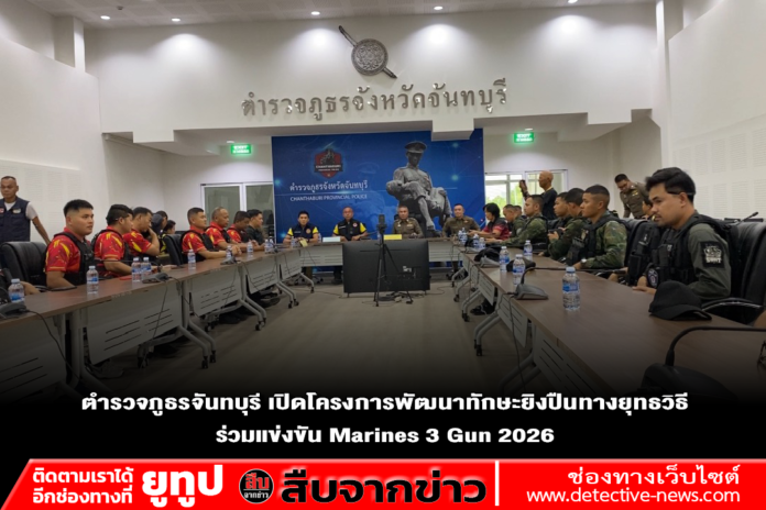 วันที่ 4 กุมภาพันธ์ 2569 ตำรวจภูธรจังหวัดจันทบุรี จัดโครงการร่วมการแข่งขันยิงปืนทางยุทธวิธีวัดความถนัด 3 ชนิดปืน (Marines 3 Gun 2026) เพื่อยกระดับศักยภาพและมาตรฐานการใช้อาวุธปืนของข้าราชการตำรวจ ให้มีความรู้ ความชำนาญ และความปลอดภัยในการปฏิบัติหน้าที่ ท่ามกลางสถานการณ์อาชญากรรมที่มีแนวโน้มรุนแรงและซับซ้อนมากยิ่งขึ้น