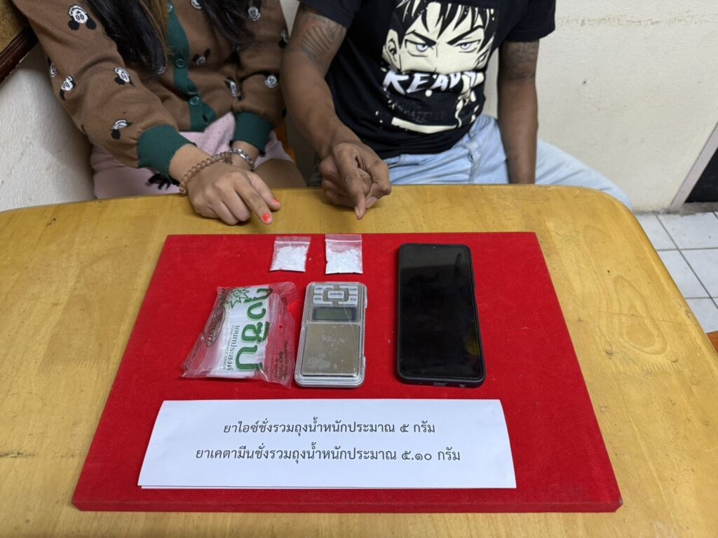 ตรวจยึดของกลางยาไอซ์และเคตามีน น้ำหนักรวมกว่า 10 กรัม พร้อมถุงซิปล็อก เครื่องชั่งดิจิทัล อุปกรณ์การเสพ โทรศัพท์มือถือ และรถจักรยานยนต์ 1 คัน โดยผลตรวจปัสสาวะพบสารเสพติดทั้ง 2 ราย