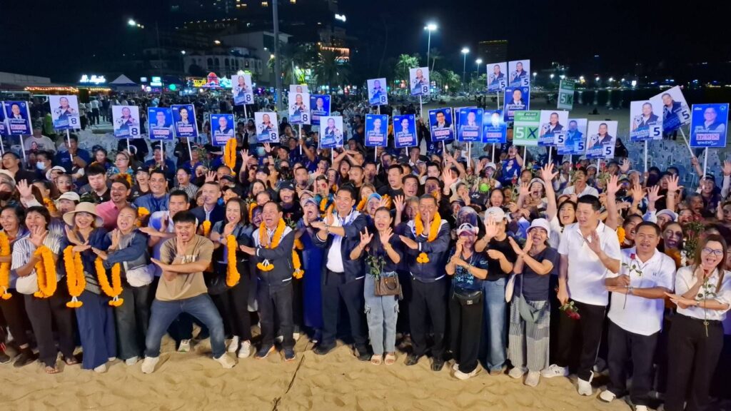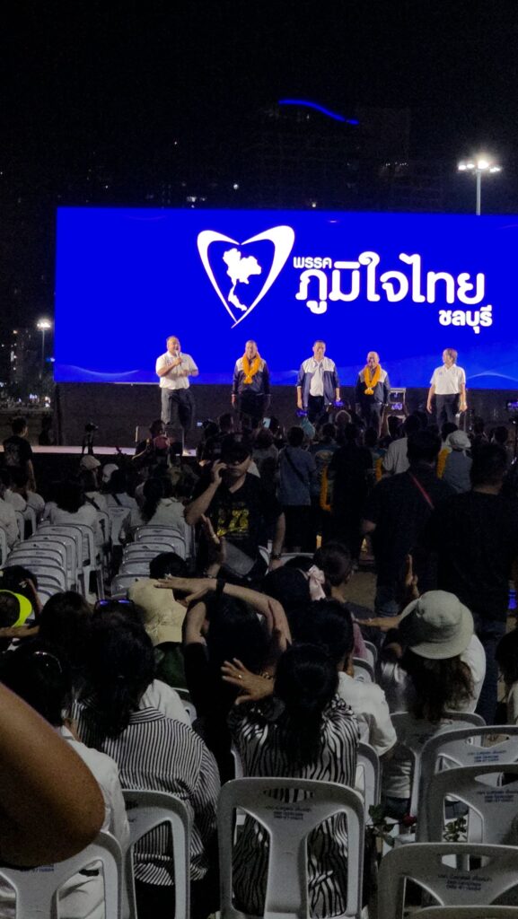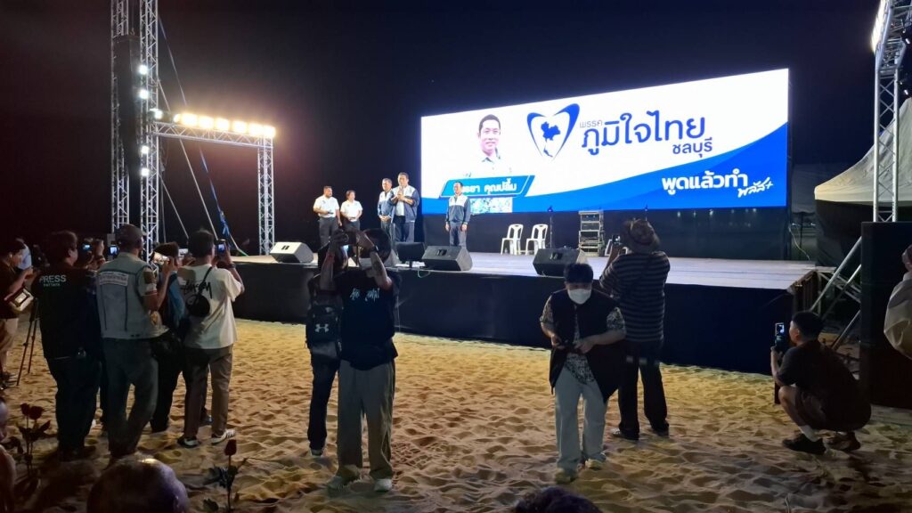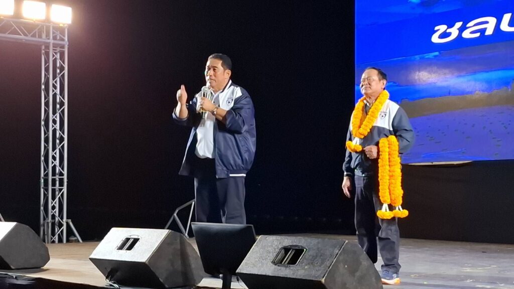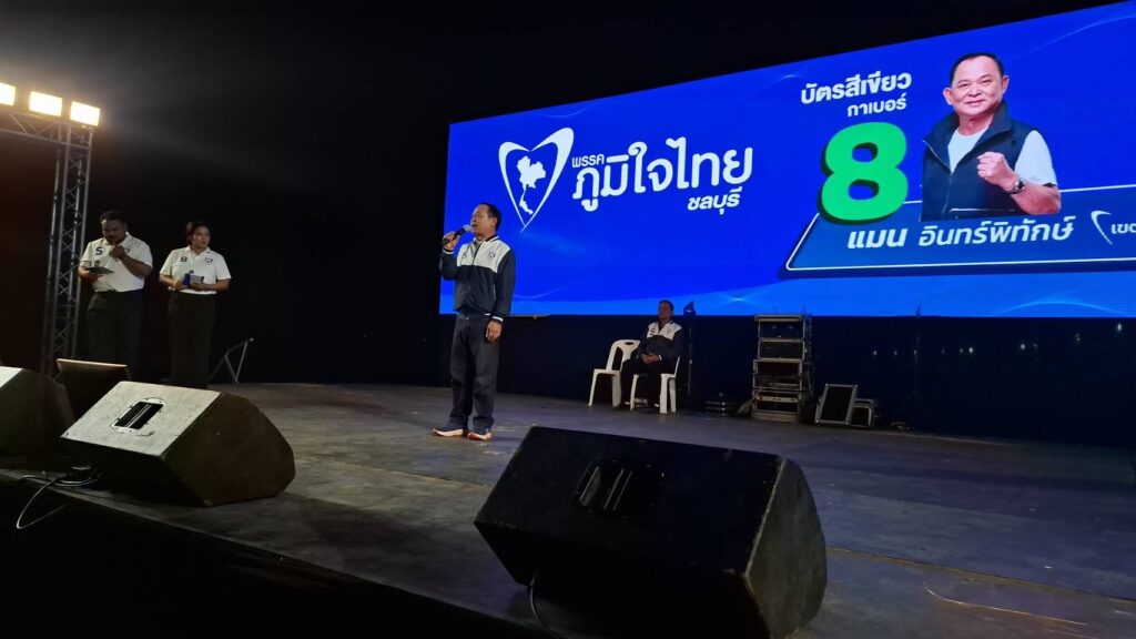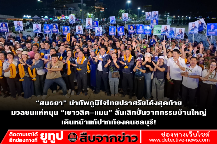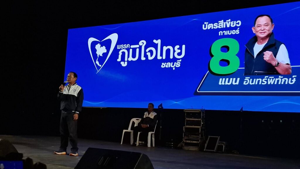 บิ๊กแป๊ะ สนธยา” นำทีมภูมิใจไทยชลบุรี ปราศรัยโค้งสุดท้าย หนุนเชาวลิต–แมน ชี้วาทกรรม “บ้านใหญ่–บ้านใหม่” เป็นเพียงคำพูดการเมืองเมื่อเวลา 18.00 น. วันที่ 5 กุมภาพันธ์ 2569 พรรคภูมิใจไทย จังหวัดชลบุรี จัดการปราศรัยย่อยช่วงโค้งสุดท้ายก่อนการเลือกตั้งสมาชิกสภาผู้แทนราษฎร ซึ่งจะมีขึ้นในวันที่ 8 กุมภาพันธ์ 2569 นำโดย นายสนธยา คุณปลื้ม อดีตรัฐมนตรีว่าการกระทรวงวัฒนธรรม ในฐานะผู้ช่วยหาเสียงพรรคภูมิใจไทย พร้อมด้วยผู้สมัครสมาชิกสภาผู้แทนราษฎรจังหวัดชลบุรีของพรรคภูมิใจไทย ร่วมขึ้นเวทีปราศรัย ได้แก่ อดีตผู้ว่าฯ เชาวลิต แสงอุทัย ผู้สมัคร สส.เขต 8 หมายเลข 5 และ สจ.แมน แมน อินทรพัฒน์ ผู้สมัคร สส.เขต 9 หมายเลข 8