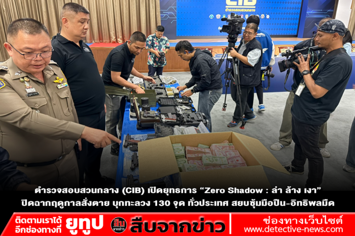 ตำรวจสอบสวนกลาง (CIB) เปิดยุทธการ “Zero Shadow : ล่า ล้าง เงา” ปิดฉากฤดูกาลสั่งตาย บุกทะลวง 130 จุด ทั่วประเทศ สยบซุ้มมือปืน-อิทธิพลมืด ยืนยันมาตรฐานใหม่ “คะแนนเสียงต้องไม่เปื้อนเลือด”