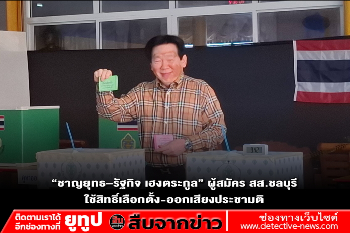 ขณะเดียวกัน นายรัฐกิจ เฮงตระกูล ผู้สมัครสมาชิกสภาผู้แทนราษฎร จังหวัดชลบุรี อีกหนึ่งราย ได้เดินทางไปใช้สิทธิเลือกตั้งและลงประชามติ ที่โรงเรียนเมืองพัทยา 11 ตำบลนาเกลือ อำเภอบางละมุง หน่วยเลือกตั้งที่ 36 ลำดับที่ 728 โดยมีภรรยา นางสาวพิมพ์พิษา เฮงตระกูล ซึ่งมีรายชื่อลำดับที่ 729 และนางวิลาวรรณ เฮงตระกูล รอง นายกกิ่งกาชาดอำเภอบางละมุง ลำดับที่ 730 เดินทางมาใช้สิทธิพร้อมกัน