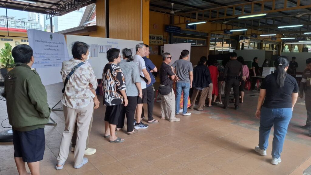 บรรยากาศการจัดการเลือกตั้งสมาชิกสภาผู้แทนราษฎร จังหวัดชลบุรี เขตเลือกตั้งที่ 8 และ 9 ตั้งแต่ช่วงเช้าที่ผ่านมาเป็นไปด้วยความเรียบร้อย ประชาชนในพื้นที่เมืองพัทยาทยอยเดินทางออกมาใช้สิทธิเลือกตั้งอย่างต่อเนื่อง ท่ามกลางการดูแลความปลอดภัยของเจ้าหน้าที่ตำรวจและอาสาสมัครป้องกันภัยฝ่ายพลเรือน (อปพร.) ประจำตามหน่วยเลือกตั้งต่าง ๆ อย่างเข้มงวด