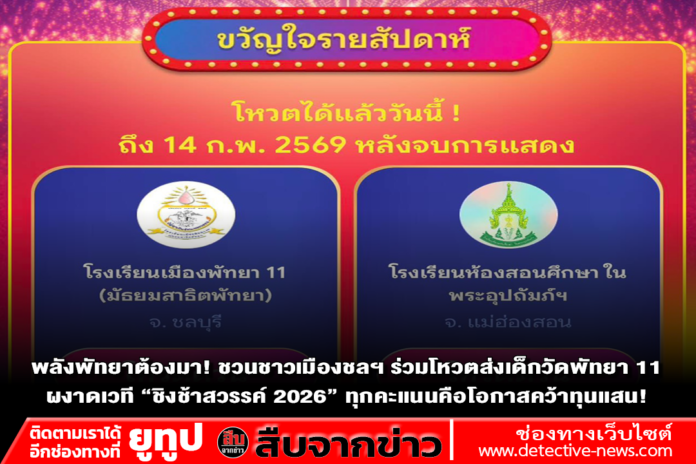 #ชิงช้าสวรรค์2026 ถ่ายทอดสด! วันเสาร์ที่ 7 ก.พ.69 เวลา 15.45 น. #workpoint #Workpoint23 #ชิงช้าสวรรค์ #ชิงช้าสวรรค์2026สนับสนุนโดยแลคตาซอย #โรงเรียนเมืองพัทยา11 #เมืองพัทยา #wellcomtopataya