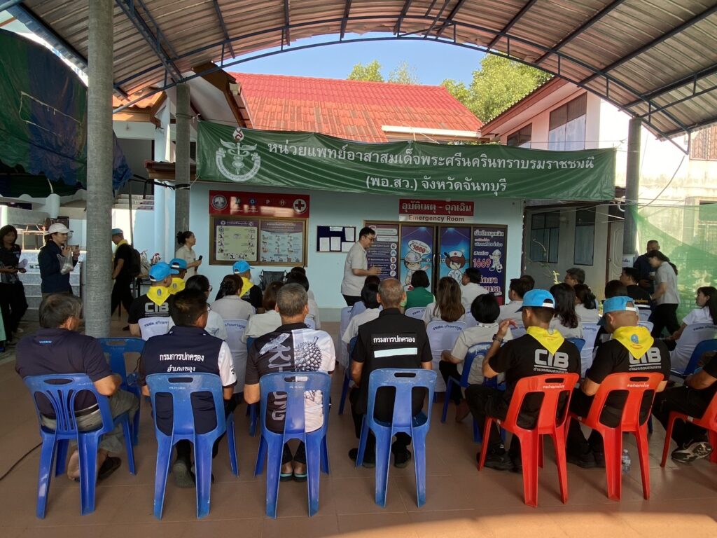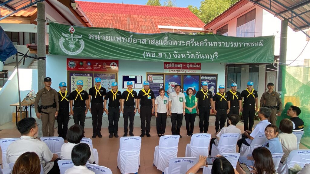 นพ.วรา เศลวัตนะกุล นายแพทย์สาธารณสุขจังหวัดจันทบุรี ในฐานะเลขานุการมูลนิธิแพทย์อาสาสมเด็จพระศรีนครินทราบรมราชชนนี ประจำจังหวัดจันทบุรี กล่าวขอบคุณกองบังคับการตำรวจน้ำ นายอำเภอขลุง หัวหน้าส่วนราชการ องค์กรปกครองส่วนท้องถิ่น คณะแพทย์ อาสาสมัคร พอ.สว. และทุกภาคส่วน ที่ร่วมบูรณาการขับเคลื่อนภารกิจในครั้งนี้ พร้อมชื่นชมจิตสาธารณะของเจ้าหน้าที่ตำรวจน้ำ ที่มีบทบาทสำคัญในการลดช่องว่างการเข้าถึงบริการด้านสาธารณสุข และยกระดับคุณภาพชีวิตของประชาชนในพื้นที่ทุรกันดาร