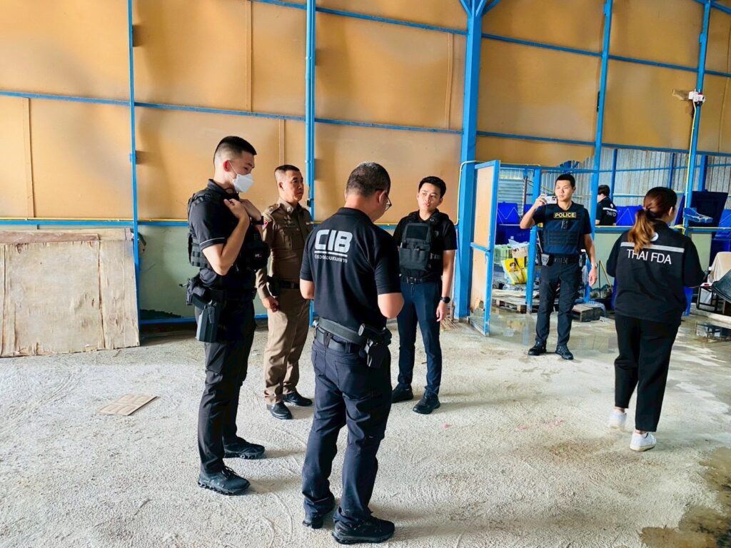 กองบัญชาการตำรวจสอบสวนกลาง โดย พล.ต.ท.ณัฐศักดิ์ เชาวนาศัย ผบช.ก., พล.ต.ต.โสภณ สารพัฒน์, พล.ต.ต.ศารุติ แขวงโสภา รอง ผบช.ก., เจ้าหน้าที่ตำรวจ บก.ปคบ. โดยการสั่งการของ พล.ต.ต.คงกฤช เลิศสิทธิกุล ผบก.ปคบ., พ.ต.อ.อนุวัฒน์ รักษ์เจริญ, พ.ต.อ.ชัฏฐ นากแก้ว, พ.ต.อ.สำเริง อำพรรณทอง, พ.ต.อ.พัฒนพงศ์ ศรีพิณเพราะ รอง ผบก.ปคบ., พ.ต.อ.วีระพงษ์ คล้ายทอง ผกก.4 บก.ปคบ. สำนักงานคณะกรรมการอาหารและยา โดย ภญ.สุภัทรา บุญเสริม เลขาธิการคณะกรรมการอาหารและยา ภก.เลิศชาย เลิศวุฒิ รองเลขาธิการคณะกรรมการอาหารและยา และสำนักงานสาธารณสุขจังหวัดสมุทรปราการ โดย น.พ.ประภาส ผูกดวง นายแพทย์สาธารณสุขจังหวัดสมุทรปราการ ปฏิบัติการกวาดล้างเครือข่ายลักลอบจำหน่ายยาแก้ไอปลอม และน้ำกระท่อมผสมน้ำหวานไม่มีสารบบอาหาร (อย.) ในพื้นที่กรุงเทพมหานคร และ จ.สมุทรปราการ ตรวจยึดของกลางเป็นยาแก้ไอปลอม น้ำกระท่อมรสชาติต่าง ๆ พร้อมดื่ม เครื่องจักร อุปกรณ์ที่ใช้ในการผลิต