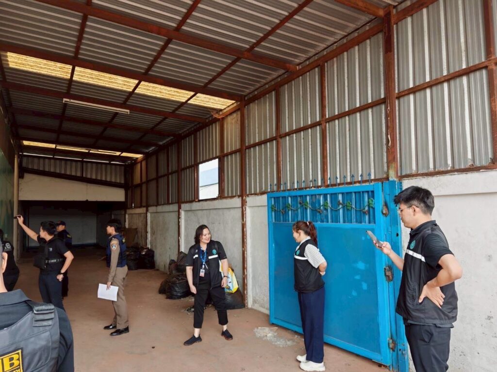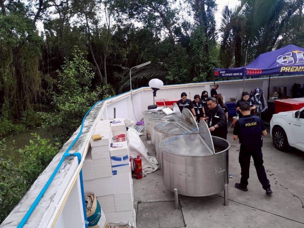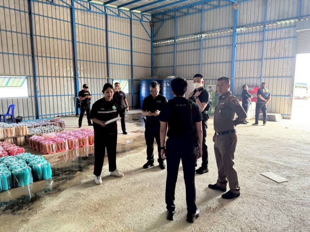 เข้าตรวจค้นสถานที่ผลิต ภายโกดังแห่งหนึ่ง ในพื้นที่ ต.ในคลองบางปลากด อ.พระสมุทรเจดีย์