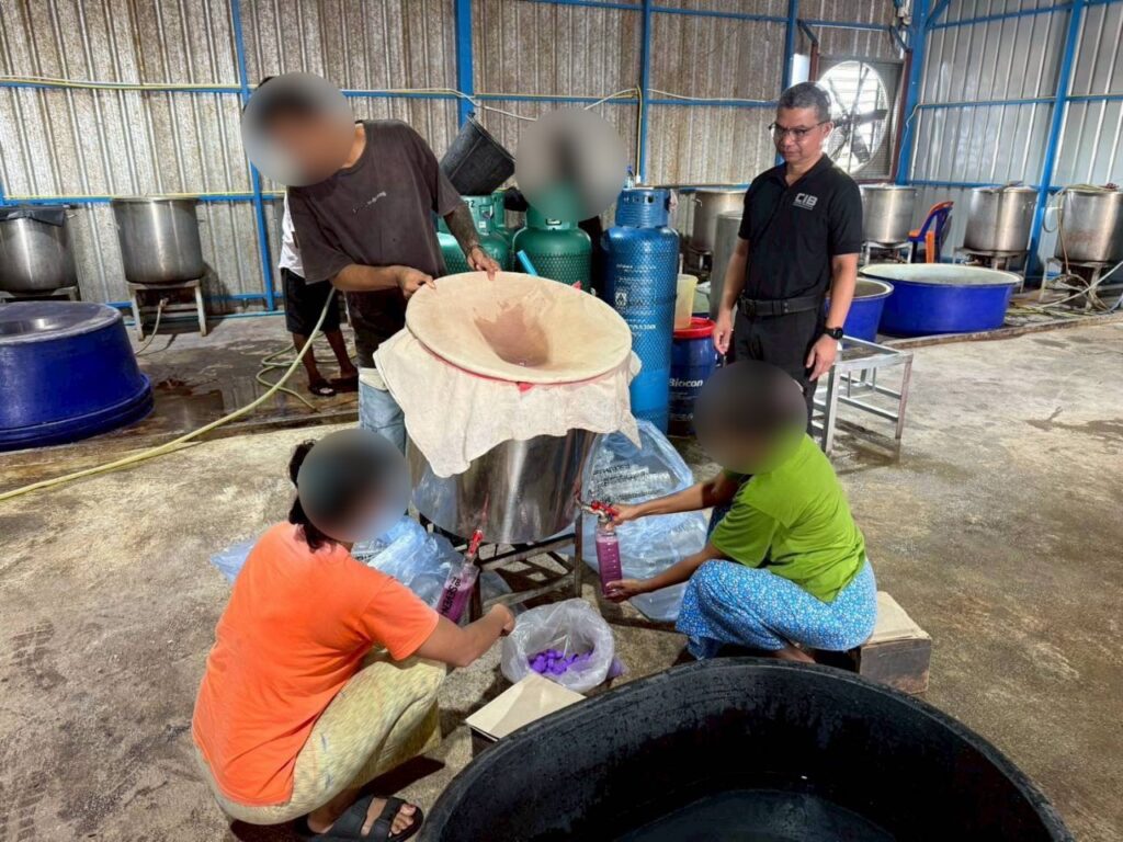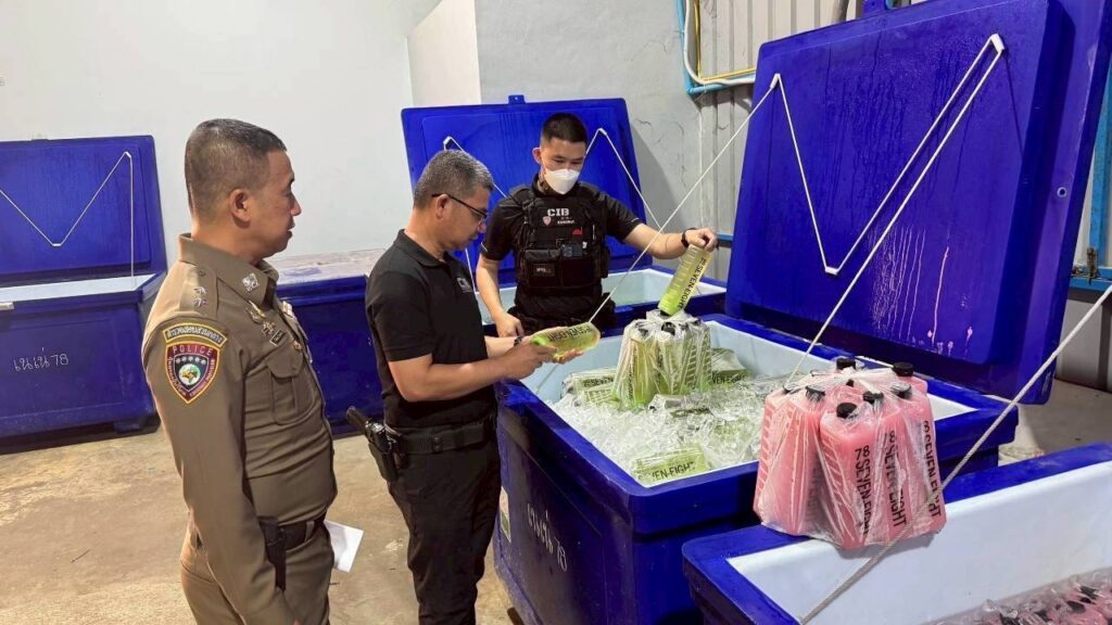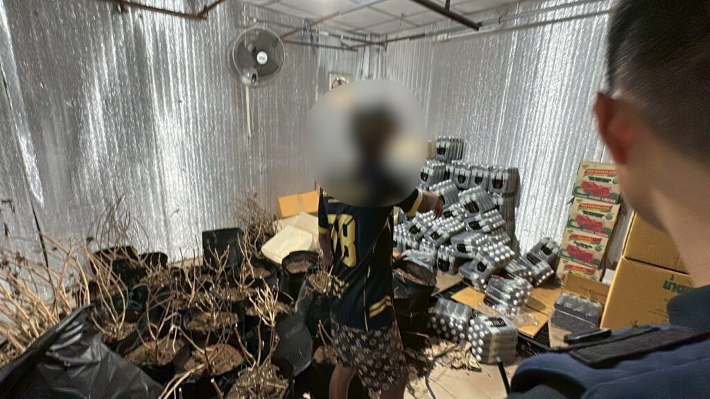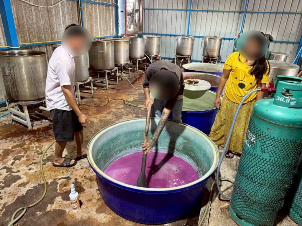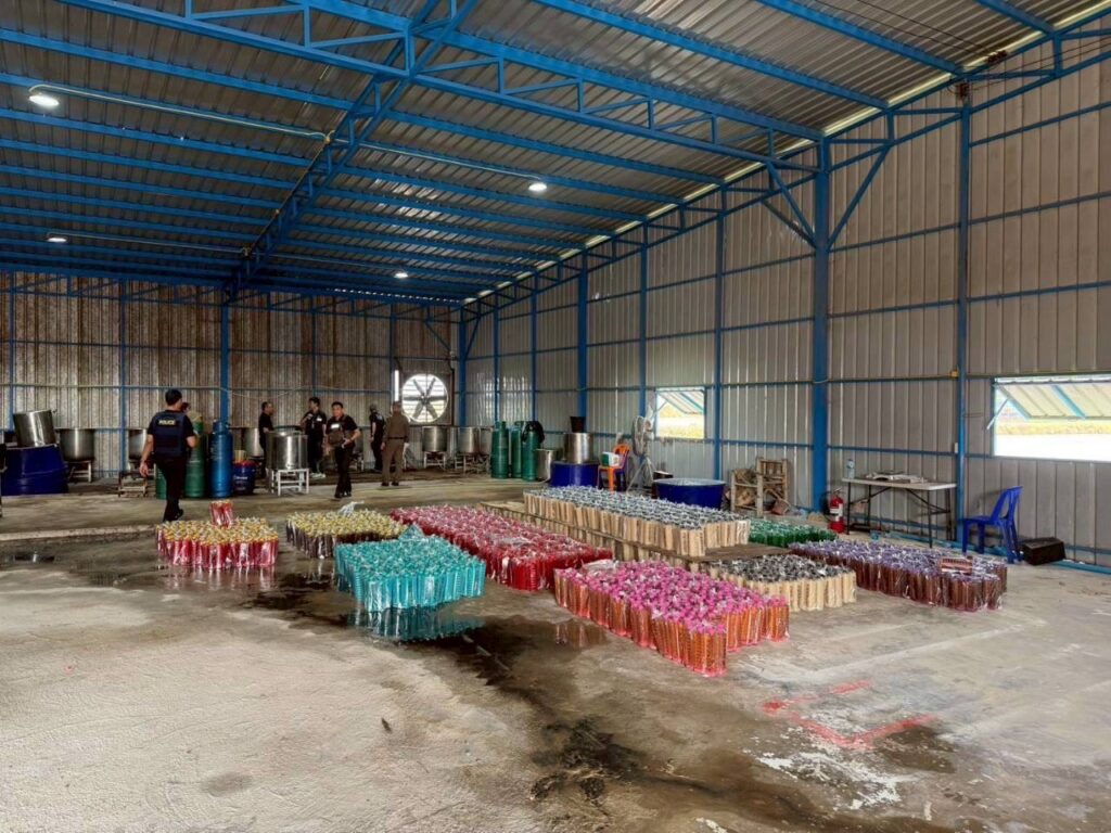 จ.สมุทรปราการ พบ Miss เทียน (สงวนสนามสกุล) สัญชาติเมียนมา อายุ 19 ปี เป็นผู้นำตรวจค้น โดยขณะตรวจค้นพบว่า ภายในโกดังดังกล่าวมีการผลิต โดยต้มใบกระท่อมต้มในหม้อ จากนั้นนำมาผสมน้ำเชื่อมรสชาติต่างๆ และใช้แรงงานประเทศเพื่อนบ้านนั่งกรอกลงขวดบรรจุภัณฑ์โดยไม่สวมถุงมือแต่อย่างใด