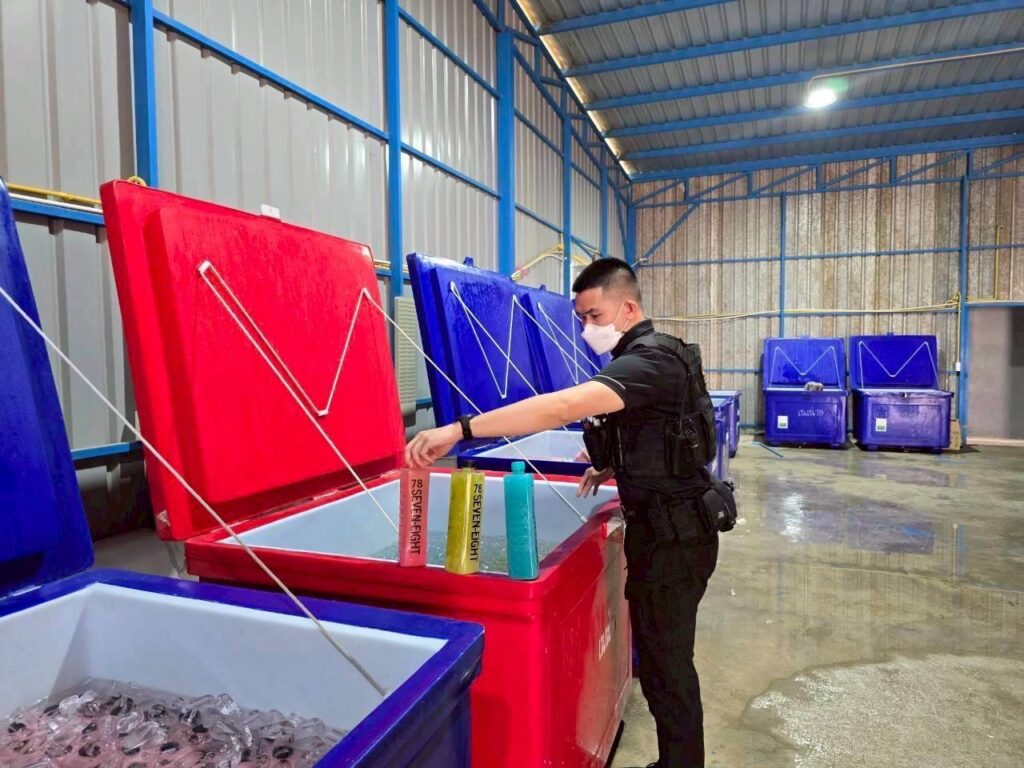 เจ้าหน้าที่ตำรวจชุดตรวจยึด นำโดย พ.ต.ท.ธันว์ธวัช อนุรักษนิยม พร้อมเจ้าหน้าที่ตำรวจ กก.4 บก.ปคบ. พร้อมเจ้าหน้าที่สำนักงานคณะกรรมการอาหารและยา และเจ้าหน้าที่สำนักงานสาธารณสุขจังหวัดสมุทรปราการ