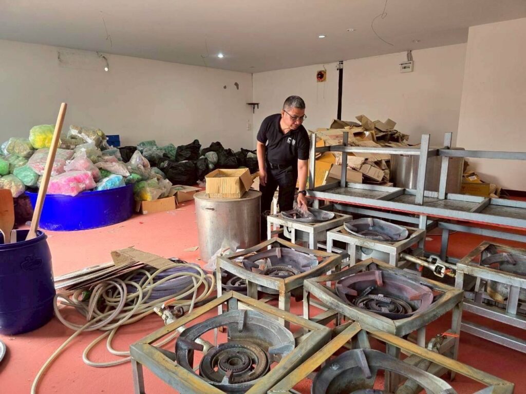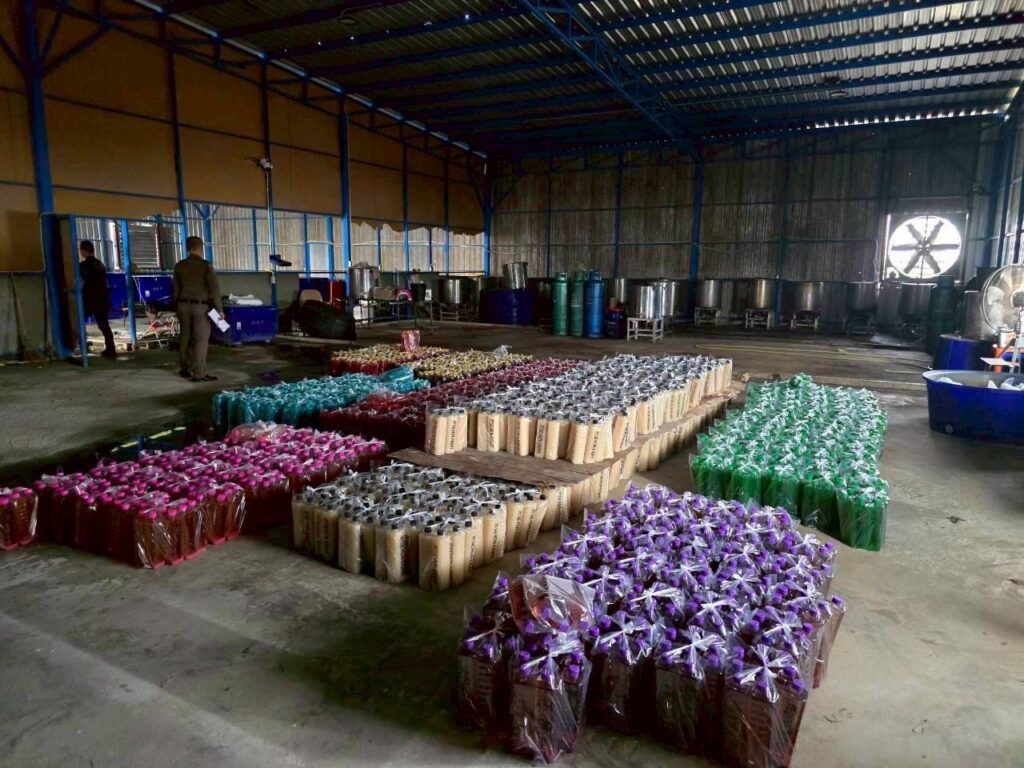 โดยกลุ่มเครือข่ายผู้กระทำความผิด จะนำส่วนผสม วัตถุดิบ และบรรจุภัณฑ์จากสถานที่ต่างๆ มาผลิต จัดเก็บ และบรรจุในโกดังในพื้นที่ จ.สมุทรปราการ และพื้นที่ใกล้เคียง ซึ่งจะเปลี่ยนสถานที่ในการผลิตไปเรื่อยๆ เพื่อให้ยากแก่การตรวจสอบของเจ้าหน้าที่ตำรวจ