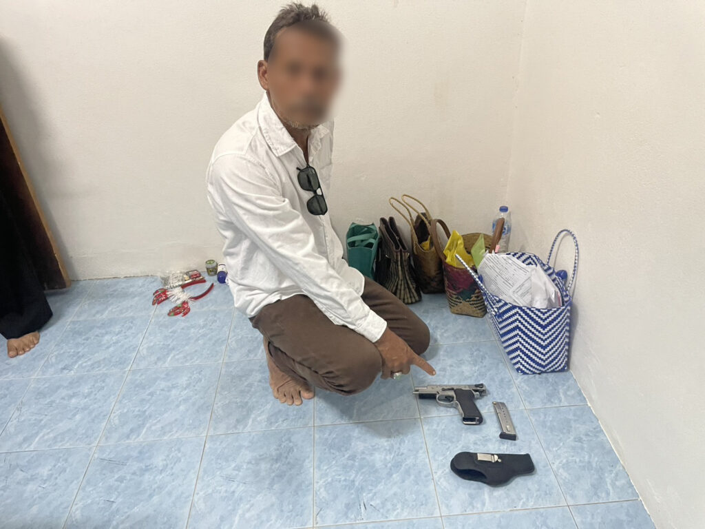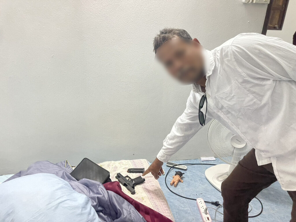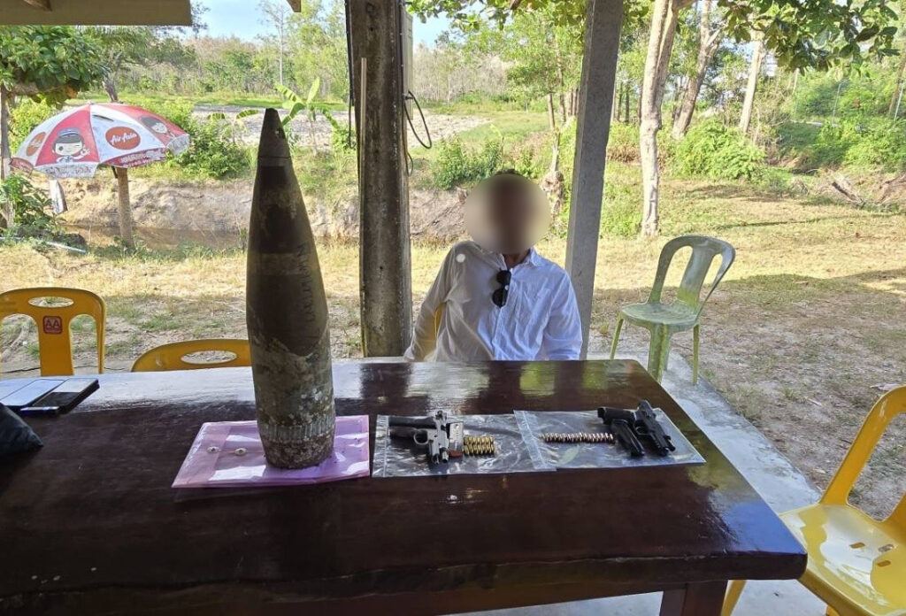 จากการตรวจค้นพบของกลางเป็น อาวุธปืนพกสั้นกึ่งอัตโนมัติ SIG SAUER รุ่น P320 ขนาด 9 มม. จำนวน 1 กระบอก พร้อมแม็กกาซีนที่บรรจุกระสุนไว้ จำนวน 17 นัด, อาวุธปืนพกสั้นกึ่งอัตโนมัติ SMITH & WESSON รุ่น MOD 5906TSW ขนาด 9 มม. จำนวน 1 กระบอก พร้อมแม็กกาซีนที่บรรจุกระสุนไว้ จำนวน 17 นัด และ หัวกระสุนปืนใหญ่ ไม่ทราบชนิดและขนาด จำนวน 1 นัด