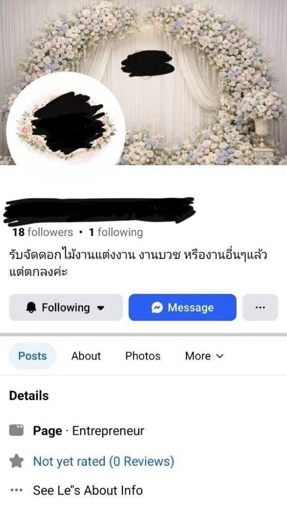 เราพบว่าออแกไนซ์ชื่อดังเจ้านี้ยังรับจัดงานโดยไปเปิดเพจใหม่ เชื่อว่าจะหลอกเหยื่อรายใหม่ต่อไปอีก