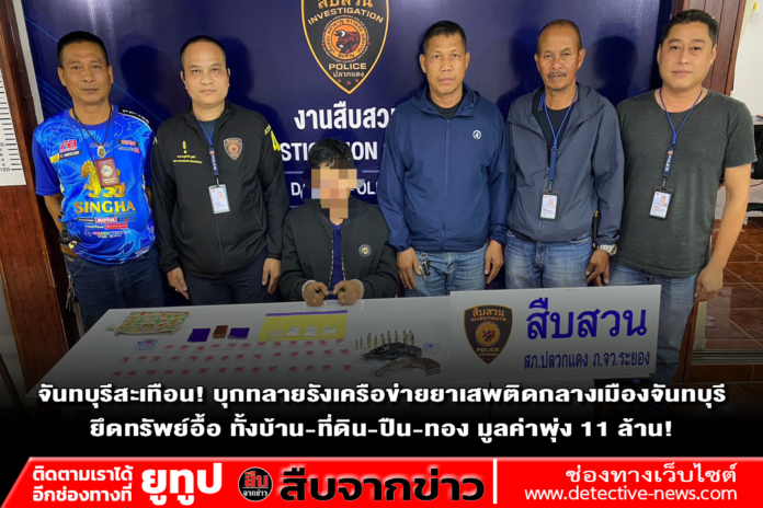 ปฏิบัติการกวาดล้างครั้งใหญ่! ตำรวจผนึกกำลัง ป.ป.ส. และฝ่ายปกครอง บุกตรวจค้นเป้าหมายกลางเมืองจันทบุรี สยบเครือข่ายยาเสพติดรายใหญ่ ยึดทรัพย์สินรวมมูลค่ากว่า 11 ล้านบาท ทั้งอาวุธปืน ทองคำ และโฉนดที่ดิน เจ้าหน้าที่เตรียมเช็กบิลเส้นทางการเงิน ขยายผลล่าตัวบงการใหญ่มาดำเนินคดีตามกฎหมายให้ถึงที่สุดค่ะคะ