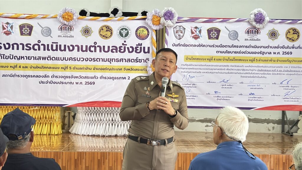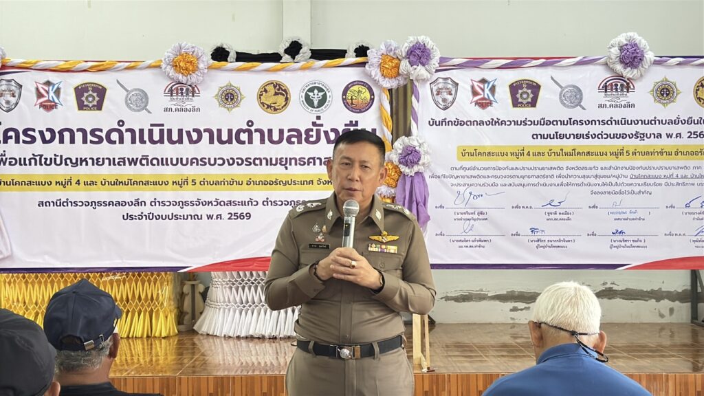 เมื่อวันที่ 11 กุมภาพันธ์ 2569 เวลา 11.30 น. สถานีตำรวจภูธรคลองลึก ภายใต้การกำกับดูแลของตำรวจภูธรจังหวัดสระแก้ว ได้เข้าร่วมพิธีเปิดโครงการตำบลยั่งยืนเพื่อแก้ไขปัญหายาเสพติดแบบครบวงจร ตามยุทธศาสตร์ชาติ ประจำปีงบประมาณ พ.ศ. 2569 ณ ศาลากลางหมู่บ้าน หมู่ที่ 4 บ้านโคกสะแบง และหมู่ที่ 5 บ้านใหม่โคกสะแบง ตำบลท่าข้าม อำเภออรัญประเทศ จังหวัดสระแก้ว