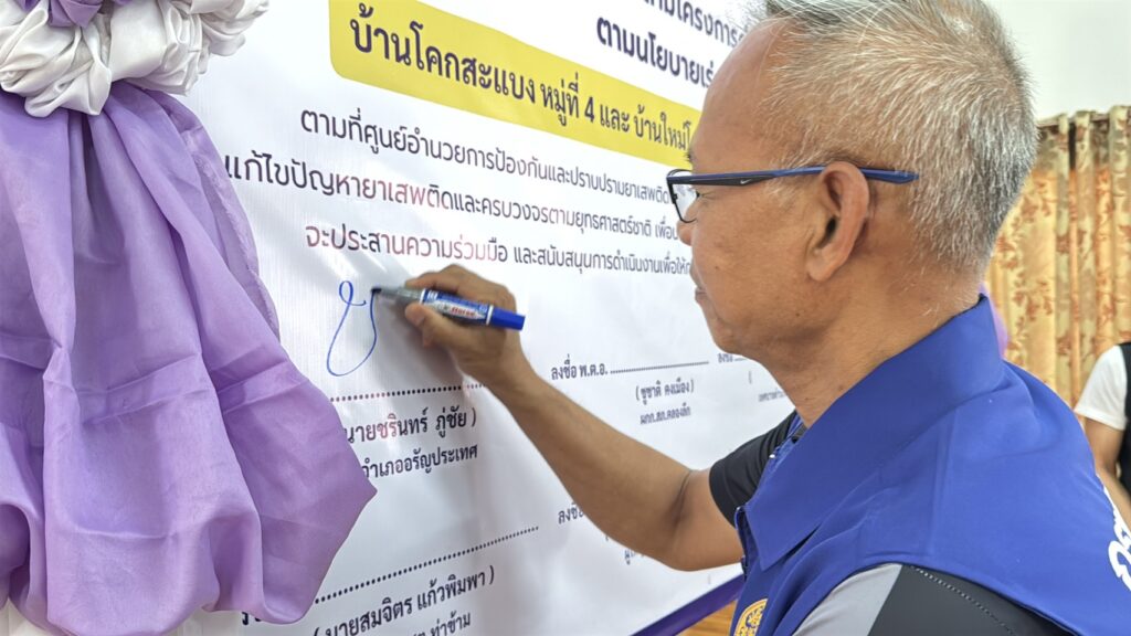 โดยได้รับเกียรติจาก นายชรินทร์ ภู่ชัย นายอำเภออรัญประเทศ เป็นประธานในพิธีเปิดโครงการฯ พร้อมร่วมลงนามบันทึกข้อตกลงความร่วมมือ (MOU) ระหว่างหน่วยงานที่เกี่ยวข้อง เพื่อยืนยันความร่วมมือในการดำเนินงานป้องกันและแก้ไขปัญหายาเสพติดในพื้นที่อย่างเป็นรูปธรรม