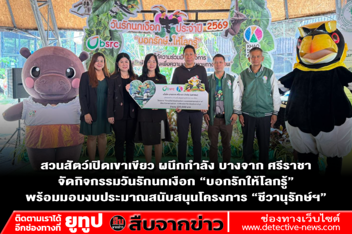 สวนสัตว์เปิดเขาเขียว ผนึกกำลัง บางจาก ศรีราชา จัดกิจกรรมวันรักนกเงือก “บอกรักให้โลกรู้” พร้อมมอบงบประมาณสนับสนุนโครงการ “ชีวานุรักษ์ฯ” เป็นจำนวนเงินทั้งสิ้น 100,000 บาท มุ่งเน้นภารกิจด้านความหลากหลายทางชีวภาพ และการติดตามนกกาฮังคืนสู่ผืนป่าธรรมชาติอย่างยั่งยืน