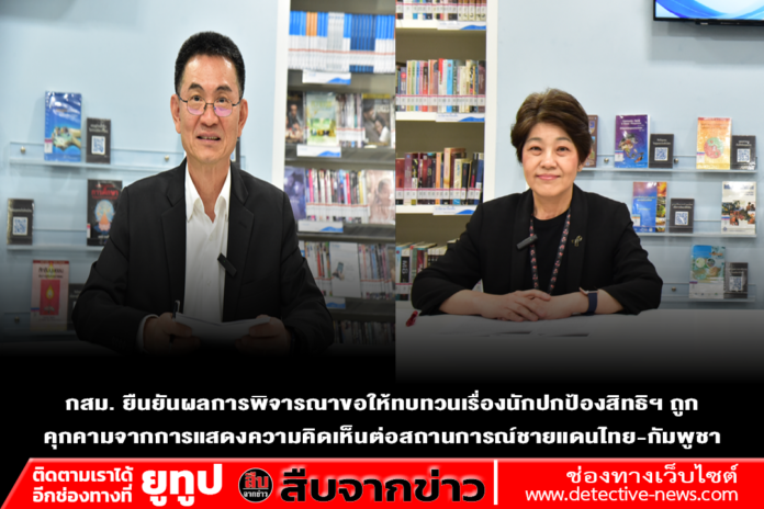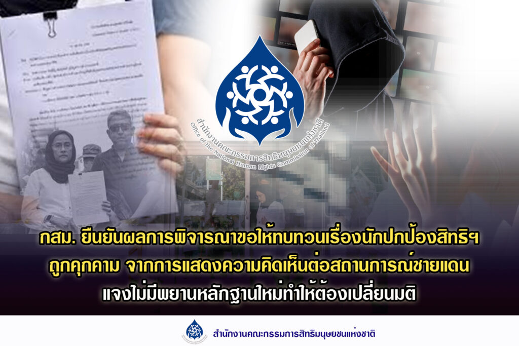 กสม. ยืนยันผลการพิจารณาขอให้ทบทวนเรื่องนักปกป้องสิทธิฯ ถูกคุกคามจากการแสดงความคิดเห็นต่อสถานการณ์ชายแดนไทย-กัมพูชา แจงไม่มีพยานหลักฐานใหม่ทำให้ต้องเปลี่ยนมติ
