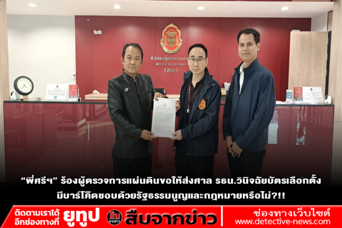 วันที่ 13 ก.พ.69 ที่สำนักงานผู้ตรวจการแผ่นดิน ศูนย์ราชการฯ ถนนแจ้งวัฒนะ นายศรีสุวรรณ จรรยา ผู้นำองค์กรรักชาติ รักแผ่นดิน ได้เดินทางมายื่นคำร้องต่อผู้ตรวจการแผ่นดิน เพื่อขอให้เสนอเรื่องพร้อมด้วยความเห็นต่อศาลรัฐธรรมนูญและศาลปกครองพิจารณาวินิจฉัย กรณี คณะกรรมการการเลือกตั้ง (กกต.) จัดทำบาร์โค๊ดในบัตรเลือกตั้ง อาจทำให้ผู้อื่นล่วงรู้ความลับในการใช้สิทธิของผู้เลือกตั้งได้ อันทำให้การเลือกตั้ง สส.ที่ผ่านมาเป็นไปโดยสุจริตและเที่ยงธรรมหรือไม่ และการออกระเบียบคณะกรรมการการเลือกตั้ง ว่าด้วยการเลือกตั้งสมาชิกสภาผู้แทนราษฎร พ.ศ.2566 ข้อ 129 วรรคสอง ชอบด้วยรัฐธรรมนูญ 2560 มาตรา 85 และ พรป.ว่าด้วยการเลือกตั้ง สส. พ.ศ.2561 มาตรา 84 และมาตรา 86 หรือไม่