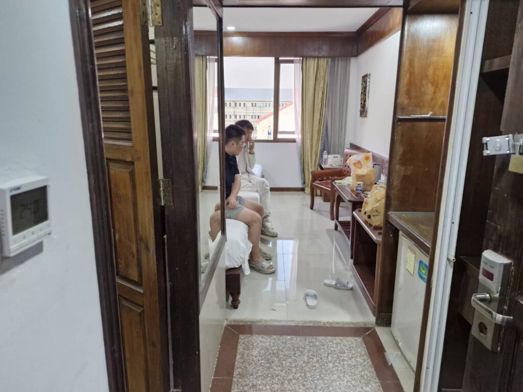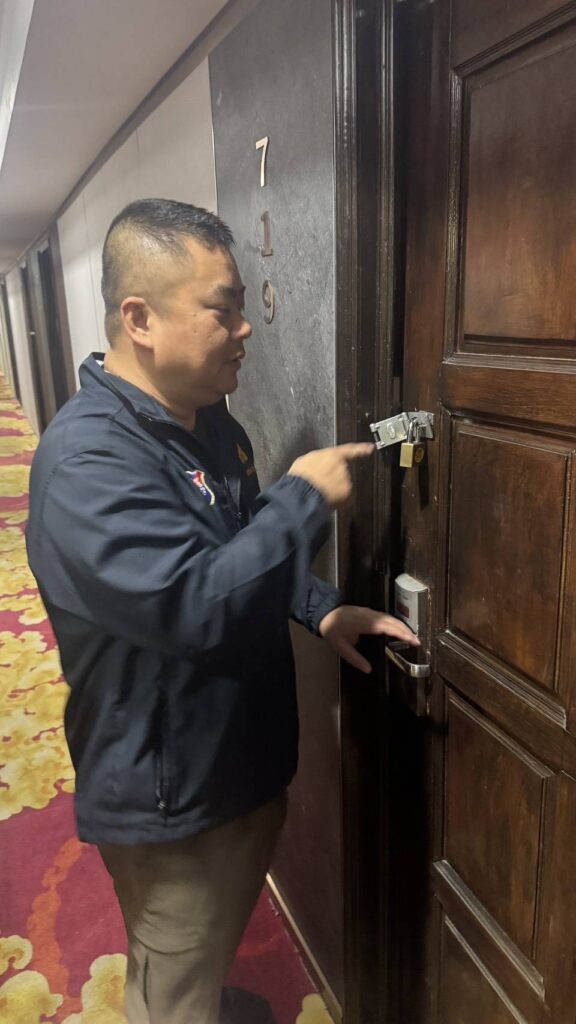 เจ้าหน้าที่จึงตัดสินใจทำลายสิ่งกีดขวางเข้าช่วยเหลือ พบผู้เสียหายนั่งอยู่บนเตียงในสภาพอิดโรย และพบ นายเหลียง เว่ย อายุ 33 ปี สัญชาติจีน อยู่ภายในห้อง จึงควบคุมตัวไว้ทันที