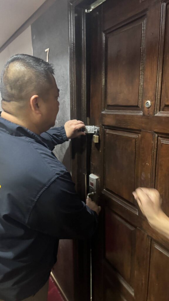เจ้าหน้าที่สืบสวนจนทราบว่าผู้เสียหายถูกควบคุมตัวอยู่ภายในห้องพักแห่งหนึ่ง เมื่อไปถึงพบว่าประตูห้องถูกล็อกด้วยแม่กุญแจจากภายนอก และได้ยินเสียงร้องขอความช่วยเหลือจากด้านใน
