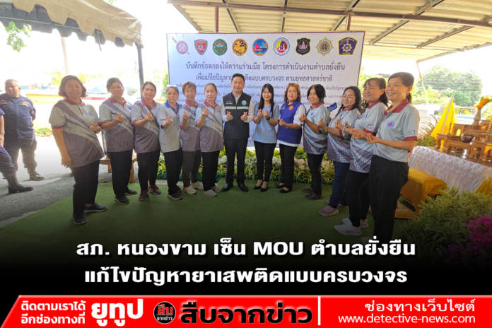สถานีตำรวจภูธรหนองขาม จัดพิธีลงนามความร่วมมือ ( MOU) กับหน่วยงานที่เกี่ยวข้อง และชุมชน ในการแก้ไขปัญหายาเสพติดอย่ายั่งยืน แบบครบวงจร ซึ่งจะร่วมมือกับชุมชนในการแจ้งเบาะแสเครือข่ายยาเสพติดในพื้นที่ ให้เจ้าหน้าที่ได้รับทราบ