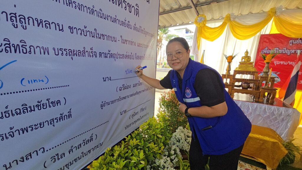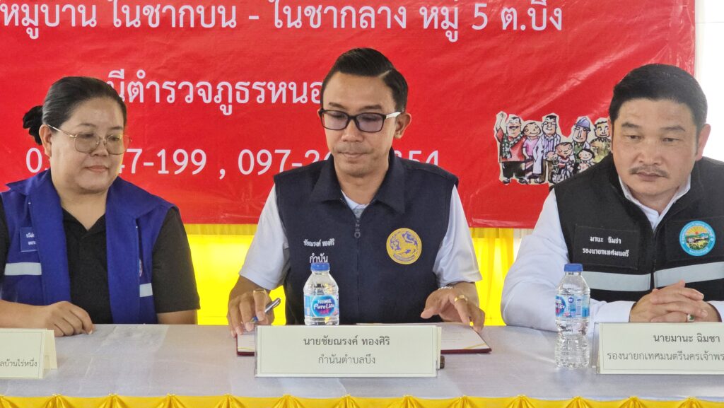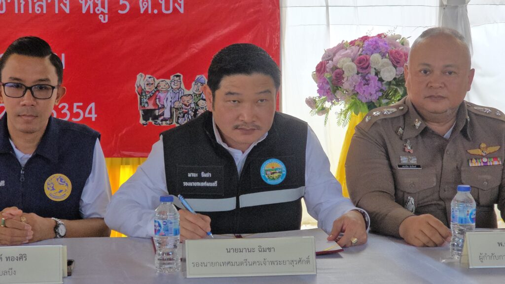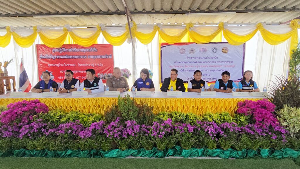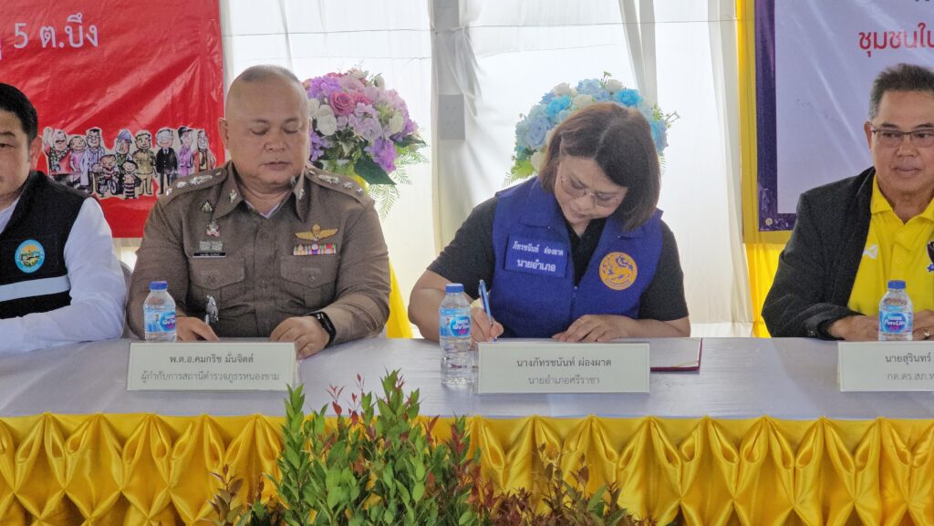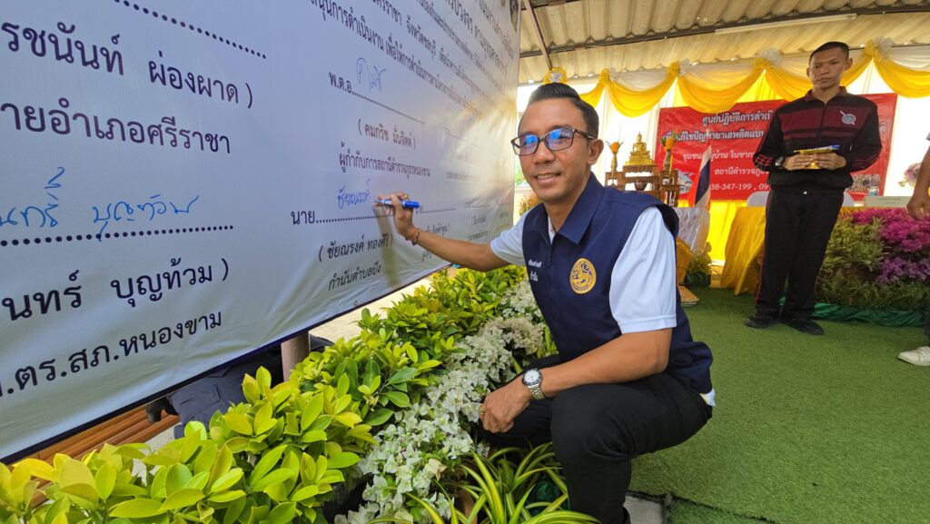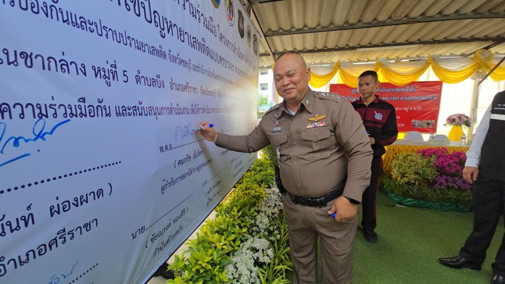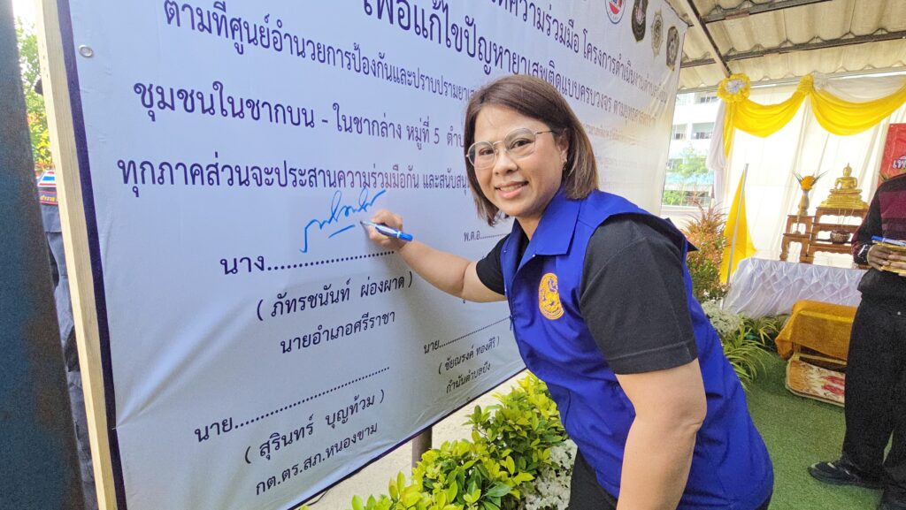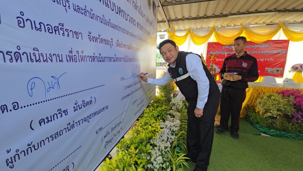 วันนี้ (13 ก.พ.2569) นางภัทรชนันท์ ผ่องผาด นายอำเภอศรีราชา จังหวัดชลบุรี เป็นประธานในเปิดโครงการดำเนินงานตำบลยั่งยืน เพื่อแก้ไขปัญหายาเสพติดแบบครบวงจร ตามยุทธศาสตร์ชาติ ประจำปี 2569 ในระหว่างวันที่ 9 กุมภาพันธ์ – 10 กรกฎาคม 2569 โดยมี พ.ต.อ.คมกริช มั่นจิตต์ ผกก.สภ.หนองขาม นายสุรินทร์ บุญท้วม กต.ตร.สภ.หนองขาม นายมานะ ฉิมชา รองนายกเทศมนตรีนครเจ้าพระยาสุรศักดิ์ นายชัยณรงค์ ทองศิริ กำนันตำบลบึง ผู้ใหญ่บ้าน สาธารณสุข และประชาชนเข้าร่วมเป็นจำนวนมาก ณ ที่ทำการหมู่บ้านประภัสสร ม.5 ตำบลบึงอำเภอศรีราชา จังหวัดชลบุรี