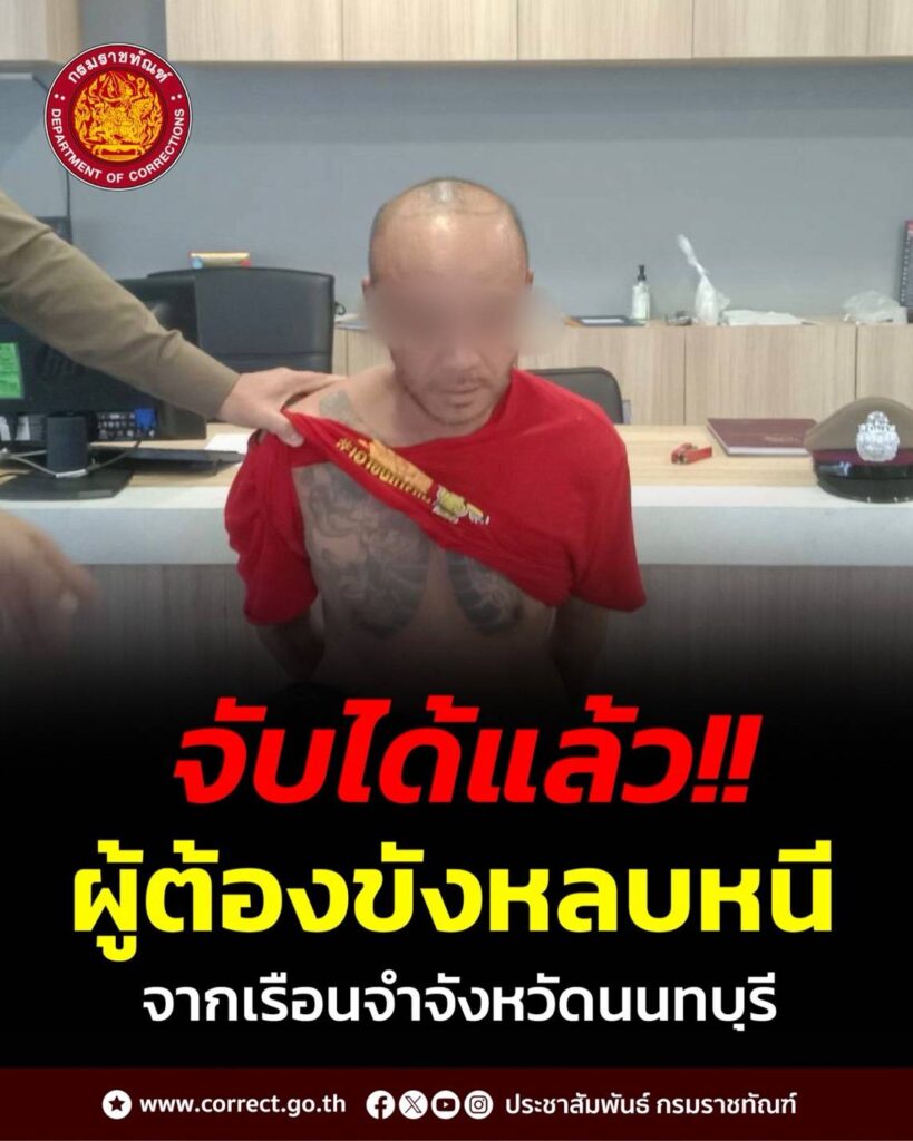 ตามที่นายชูชัย ศรจิ้น อายุ 40 ปี ฐานความผิดร่วมกันลักทรัพย์ในเวลากลางคืนโดยใช้ยานพาหนะเพื่อสะดวกแก่การกระทำความผิดหรือการพาทรัพย์นั้นไปหรือเพื่อให้พ้นจากการจับกุม ก่อเหตุหลบหนีออกจากเรือนจำจังหวัดนนทบุรี เมื่อวันที่ 13 กุมภาพันธ์ 2569 นั้น