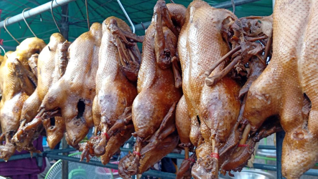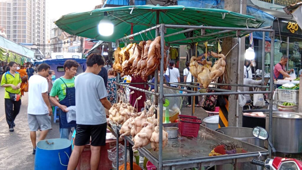 จากการสอบถามพ่อค้าขายไก่และเป็ดเปิดเผยว่าในปีนี้นั้นราคาไก่และเป็ดไม่ขยับตัวมากนักโดยราคาไก่ที่ต้มแล้วอยู่ที่ราคาตัวละ 200 ถึง 250 แล้วแต่ขนาดและน้ำหนักของตัวไก่และเป็ดหากต้มแล้วอยู่ที่ตัวละ 350 ถึง 380 แล้วแต่น้ำหนักของตัวเป็ดหากเป็นไก่สดที่ยังไม่ต้มเริ่มต้นตัวที่ละ 150 บาทส่วนเป็ดที่ยังไม่ต้มอยู่ที่ 250-280 บาท โดยในช่วงเช้านี้มีประชาชนเริ่มแห่มาจับจ่ายใช้สอยในช่วงเทศกาลตรุษจีน เป็นจำนวนมากทำให้บรรยากาศนั้นครึกครื้นในช่วงเช้า ประกอบกับวันนี้เป็นวันหยุดทำให้ประชาชนออกมาใช้จ่าย ในเทศกาล
