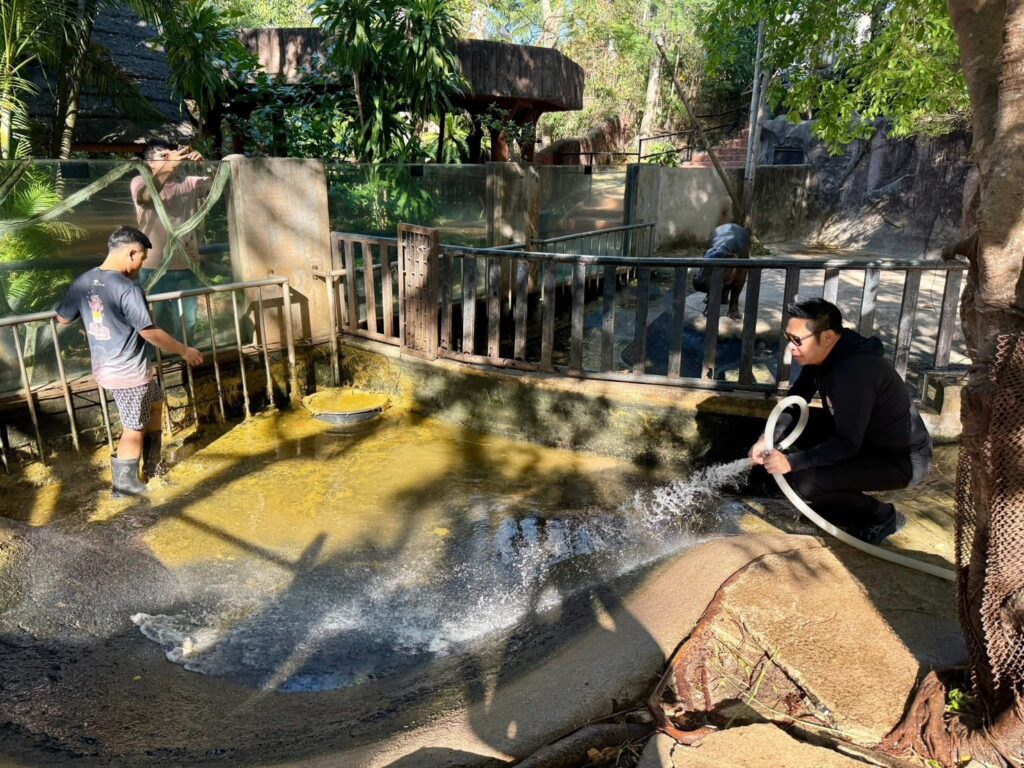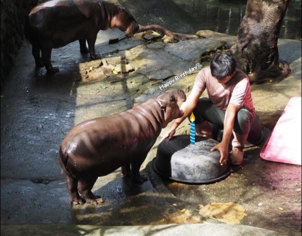 ภาพที่ปรากฏในโซเชียลน่าจะเป็นมูลสัตว์ที่น้องขับถ่ายออกมาในระหว่างวัน ซึ่งเป็นพฤติกรรมปกติของฮิปโปที่มักจะขับถ่ายในน้ำหรือบนบกเพื่อ “สร้างอาณาเขต” ของตัวเอง ทั้งนี้ยืนยันว่าทีมคีปเปอร์มีการทำความสะอาดและเก็บกวาดมูลสัตว์ทุกเช้าเป็นประจำตามมาตรฐานสวัสดิภาพสัตว์สากล (WAZA)