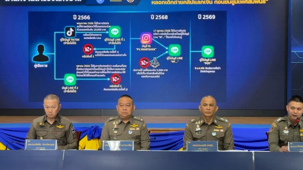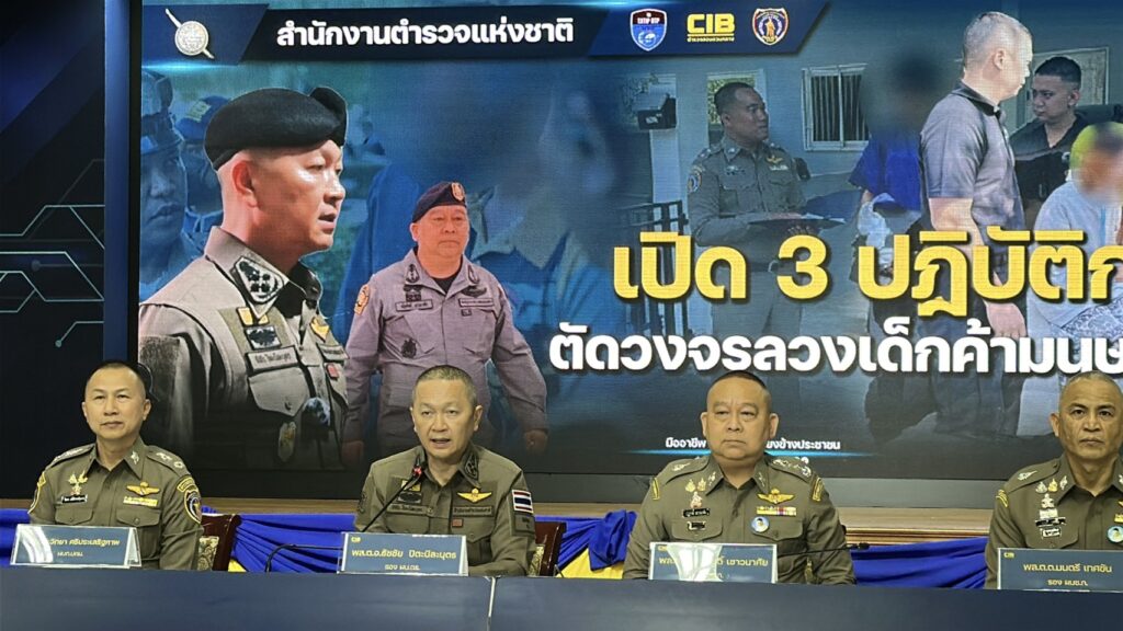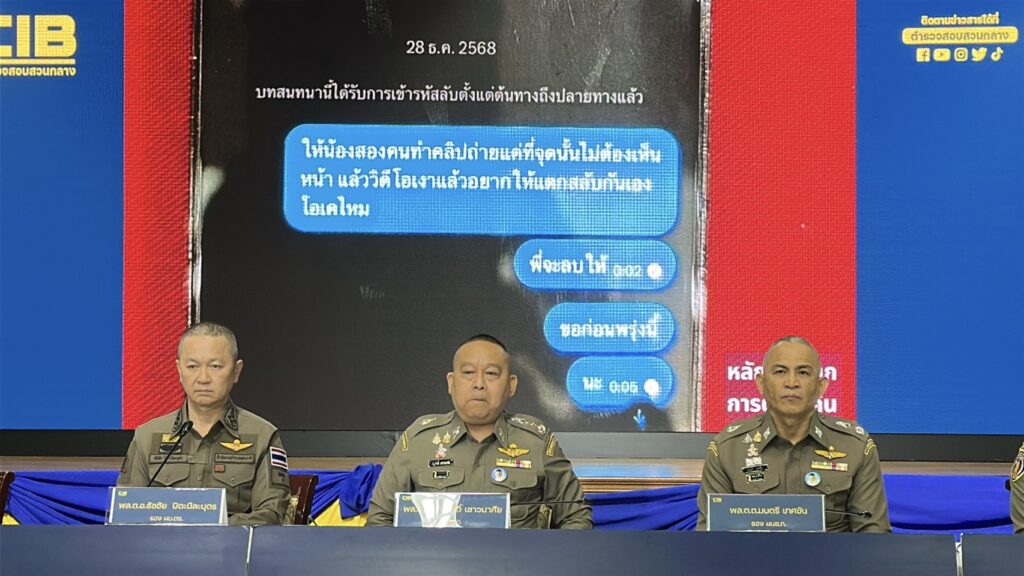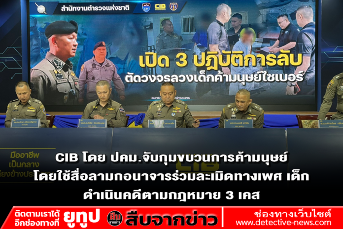 เวลา 17.00 น.วันที่ 17 ก.พ.69 ที่ ห้องแถลงข่าวชั้น 2 อาคารประชาอารักษ์ บช.ก. พล.ต.อ.ธัชชัย ปิตะนีละบุตร รอง ผบ.ตร. และ พล.ต.ท.ณัฐศักดิ์ เชาวนาศัย ผบช.ก. พล.ต.ต.วิทยา ศรีประเสริฐภาพ ผู้บังคับการตร.ปราบปรามการค้ามนุษย์ ร่วมการแถลงข่าว ผลการปฏิบัติ “เปิด 3 ปฏิบัติการ ตัดวงจรลวงเด็กค้ามนุษย์ไซเบอร์”