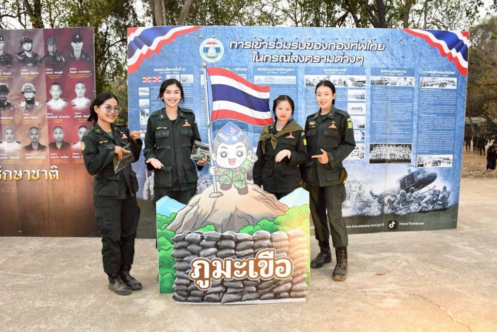 ภายในงานจัดนิทรรศการ 6 กรณีสงคราม พร้อมสดุดีทหารผู้เสียชีวิตจากการปฏิบัติหน้าที่พิทักษ์ชายแดนไทย–กัมพูชา และเสวนาถ่ายทอดวีรกรรมการปกป้องประเทศ โดย นาวาเอก ธรรมนูญ วรรณา บรรยายหัวข้อ “ความสำเร็จในการปฏิบัติภารกิจเข้ายึดคืนบ้านหนองรี (บ้านสามหลัง) จังหวัดตราด”